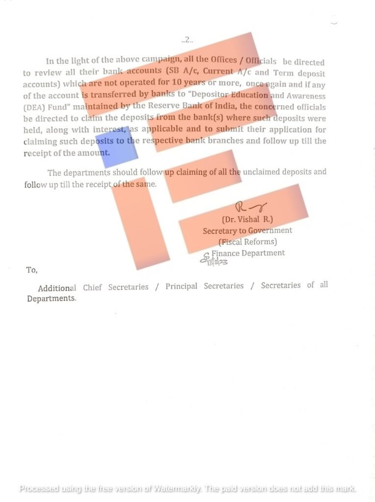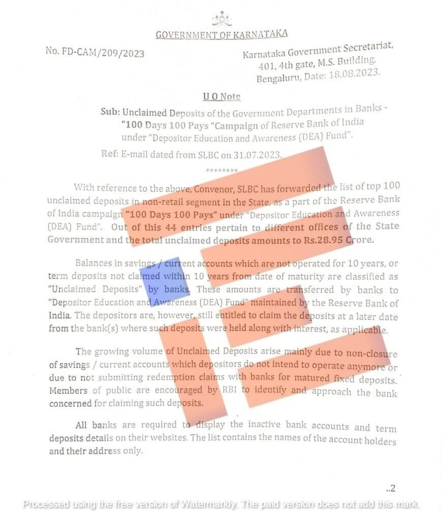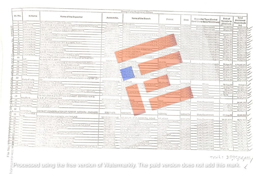ಸಾರ್ವಜನಿಕ ವಲಯದ ಬ್ಯಾಂಕ್ಗಳಲ್ಲಿ 10 ವರ್ಷ ಅಥವಾ ಅದಕ್ಕಿಂತ ಹೆಚ್ಚಿನ ಅವಧಿಯ ಕ್ಲೈಮ್ ಮಾಡದ ಠೇವಣಿಗಳು ಡಿಸೆಂಬರ್ 2020 ಮತ್ತು ಫೆಬ್ರವರಿ 2023 ರ ನಡುವೆ ಶೇಕಡಾ 70 ಕ್ಕಿಂತ ಹೆಚ್ಚು ಬೆಳೆದಿರುವ ಹೊತ್ತಿನಲ್ಲಿಯೇ ರಾಜ್ಯದ ಹಲವು ಜಿಲ್ಲಾಧಿಕಾರಿಗಳೂ ಮತ್ತು ವಿವಿಧ ಇಲಾಖೆ, ನಿಗಮ ಮಂಡಳಿಗಳ ಹೆಸರಿನಲ್ಲಿರುವ ಖಾತೆಯಲ್ಲಿ ಹಣವಿದ್ದರೂ ಕ್ಲೈಮ್ ಮಾಡದೇ ಇರುವ ಪಟ್ಟಿಯೂ ಮುನ್ನೆಲೆಗೆ ಬಂದಿದೆ.