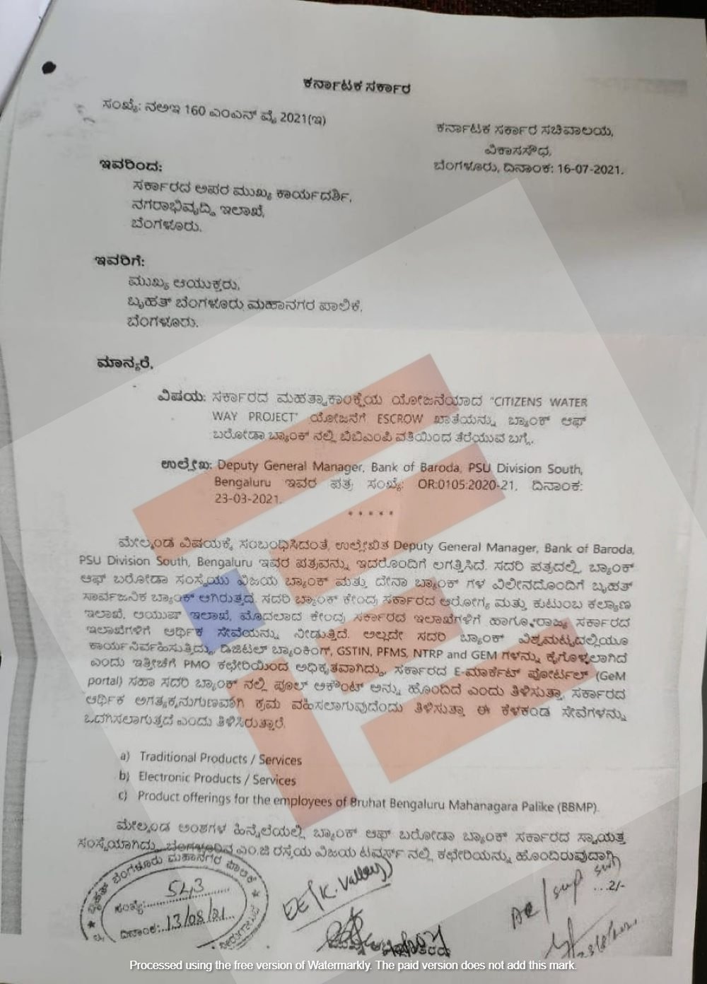 ಟ್ರೆಡಿಷನಲ್ ಪ್ರೊಡಕ್ಟ್, ಸರ್ವಿಸ್, ಎಲೆಕ್ಟ್ರಾನಿಕ್ ಪ್ರೊಡಕ್ಟ್, ಪ್ರೊಡಕ್ಟ್ ಆಫರಿಂಗ್ಸ್ ಫಾರ್ ದಿ ಎಂಪ್ಲಾಯಿಸ್ ಆಫ್ ಬಿಬಿಎಂಪಿ ಸೇವೆಗಳನ್ನು ಒದಗಿಸುತ್ತಿದೆ. ಹೀಗಾಗಿ ಬಿಬಿಎಂಪಿಯ ಉದ್ದೇಶಿತ ಯೋಜನೆಯಾದ ಸಿಟಿಜನ್ ವಾಟರ್ ವೇ ಪ್ರಾಜೆಕ್ಟರ್ ಯೋಜನೆಯ ಎಸ್ಕ್ರೋ ಖಾತೆಯನ್ನು ಗಾಂಧಿ ಬಜಾರ್ನಲ್ಲಿರುವ ಬ್ಯಾಂಕ್ ಬರೋಡಾ ಶಾಖೆಯಲ್ಲಿ ಖಾತೆ ತೆರೆಯಲು ಅವಕಾಶ ಕಲ್ಪಿಸುವಂತೆ ಕೋರಿದೆ.