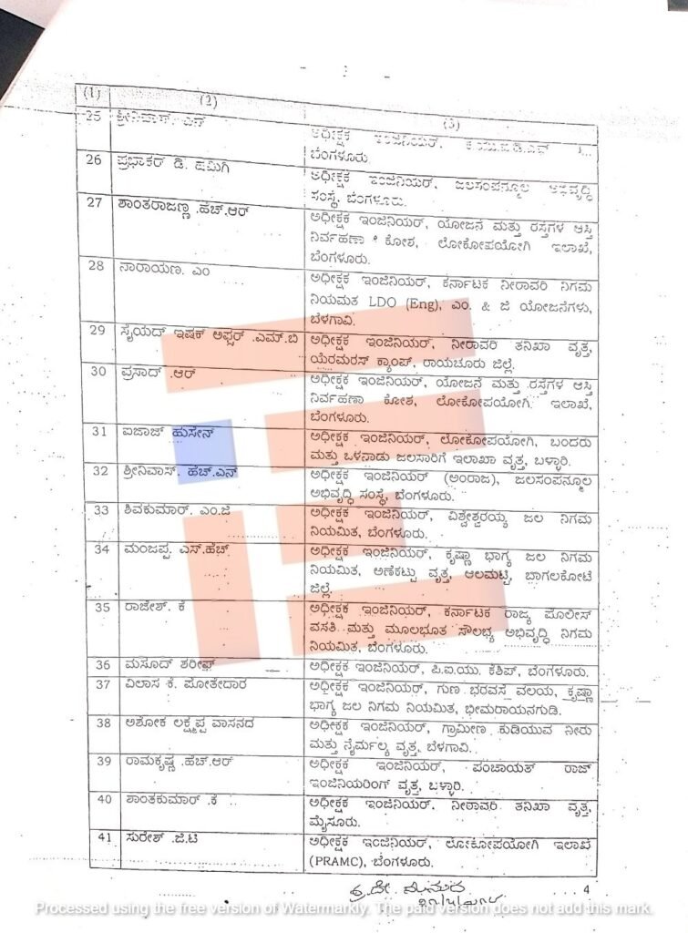 ಒಟ್ಟು 41 ಮಂದಿ 2018 ಮತ್ತು 2019ರಲ್ಲಿ ನಿಯಮ 42ರ ಅಡಿ ಮುಖ್ಯ ಇಂಜಿನಿಯರ್ಗಳಾಗಿ ಪದನ್ನೋತಿ ಹೊಂದಿದ್ದಾರೆ.