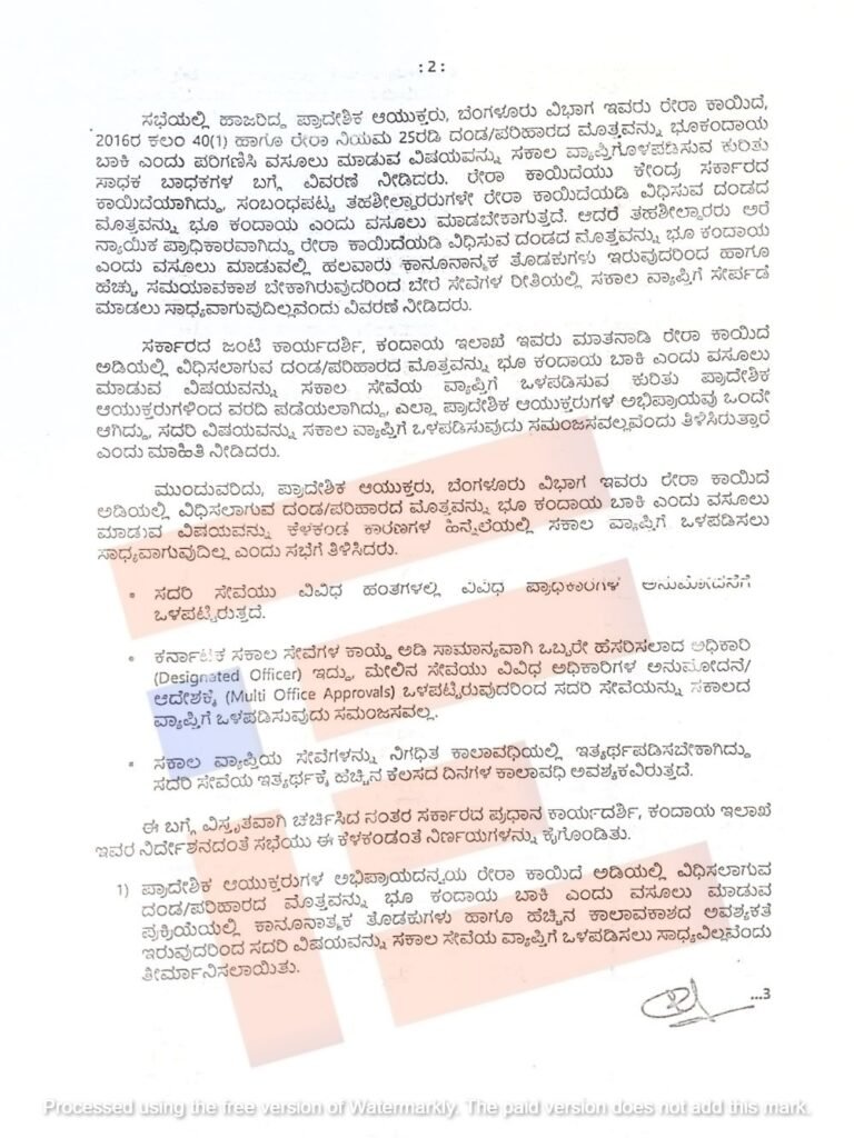 ಕಂದಾಯ ಸಚಿವ ಕೃಷ್ಣಬೈರೇಗೌಡ ಮತ್ತು ವಸತಿ ಸಚಿವ ಜಮೀರ್‌ ಅಹ್ಮದ್‌ ಖಾನ್‌ ಅವರು ಈ ಕುರಿತು ಸದ್ಯದಲ್ಲೇ ಪ್ರತ್ಯೇಕವಾಗಿ ಚರ್ಚಿಸಲಿದ್ದಾರೆ ಎಂದು ಗೊತ್ತಾಗಿದೆ.