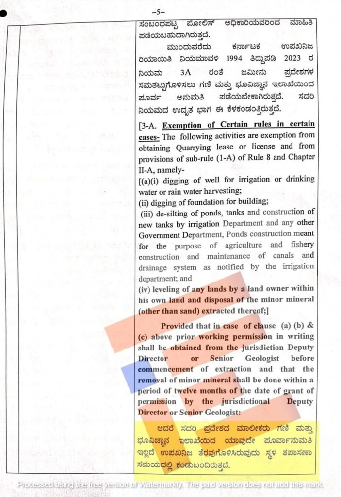ಇದಾದ ನಂತರ 2023ರ ಜುಲೈ 10ರಂದು ಇದೇ ಪ್ರದೇಶದ ಮಾಲೀಕರು ಕಲ್ಲುಗಳನ್ನು ತೆರವುಗೊಳಿಸಲು ಅನುಮತಿ ಕೋರಿ ಕಚೇರಿಗೆ ಅರ್ಜಿ ಸಲ್ಲಿಸಿದ್ದರು. ಆದರೆ ಪೂರ್ವಾನುಮತಿ ಇಲ್ಲದೆಯೆ ಸದರಿ ಪ್ರದೇಶದಲ್ಲಿದ್ದ ಕಟ್ಟಡ ಕಲ್ಲನ್ನು ತೆರವುಗೊಳಿಸಿದ್ದರು. ಈ ಪ್ರದೇಶದ ಮಾಲೀಕರು ಸಕ್ಷಮ ಪ್ರಾಧಿಕಾರದಿಂದ ಅನುಮತಿ ಪಡೆಯದೇ ಸ್ಫೋಟಕ ಬಳಸಿ ಕಲ್ಲು ಬಂಡೆಗಳನ್ನು ಹೊಡೆದು ತೆರವುಗೊಳಿಸಿದ್ದರು ಎಂದು ವರದಿಯಲ್ಲಿ ವಿವರಿಸಲಾಗಿತ್ತು.