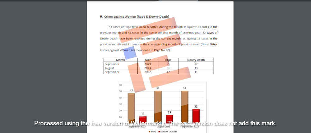 2022ರ ಸೆಪ್ಟಂಬರ್‌ನಲ್ಲಿ 46 ಅತ್ಯಾಚಾರ ಪ್ರಕರಣಗಳು ದಾಖಲಾಗಿದ್ದರೇ 2023ರ ಸೆಪ್ಟಂಬರ್‌ನಲ್ಲಿ 51 ಅತ್ಯಾಚಾರ ಪ್ರಕರಣಗಳು ವರದಿಯಾಗಿವೆ. ಆಗಸ್ಟ್‌ನಲ್ಲಿ 13 ಪ್ರಕರಣಗಳು ದಾಖಲಾಗಿದ್ದವು.