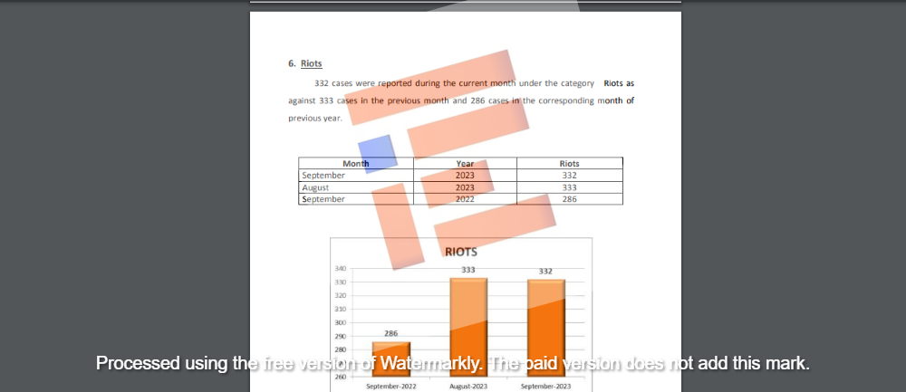 20224 ಸೆಪ್ಟಂಬರ್‌ನಲ್ಲಿ 285 ಗಲಭೆ ಪ್ರಕರಣಗಳಿದ್ದರೇ 2023ರ ಸೆಪ್ಟಂಬರ್‌ನಲ್ಲಿ 332 ಗಲಭೆ ಪ್ರಕರಣಗಳು ವರದಿಯಾಗಿವೆ. ಆಗಸ್ಟ್‌ನಲ್ಲಿ 333 ಪ್ರಕರಣಗಳು ದಾಖಲಾಗಿದ್ದವು.
