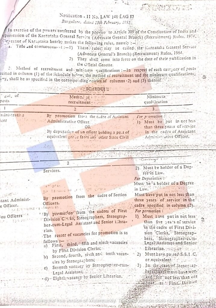 ಅಡ್ವೋಕೇಟ್ ಜನರಲ್ ಕಚೇರಿಯಲ್ಲಿ ಆಡಳಿತಾಧಿಕಾರಿ ಹುದ್ದೆ ಹೊಂದಲು ಅರ್ಹ ಅಭ್ಯರ್ಥಿಗಳು ಲಭ್ಯವಿರಲಿಲ್ಲ. ಹೀಗಾಗಿ ಕೆಎಎಸ್ ಅಧಿಕಾರಿ ಅಭಿಜಿನ್ ಬಿ ಎಂಬುವರನ್ನು ನಿಯೋಜನೆ ಮೂಲಕ 2022ರ ಡಿಸೆಂಬರ್ 15ರಂದು ನೇಮಕ ಮಾಡಲಾಗಿತ್ತು.