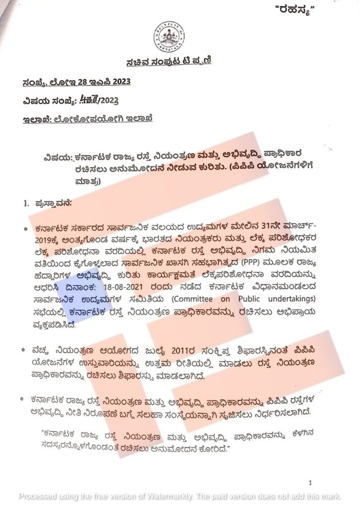 ರಸ್ತೆ ನಿಯಂತ್ರಣ, ಅಭಿವೃದ್ಧಿ ಪ್ರಾಧಿಕಾರಕ್ಕೆ ಕೃಷ್ಣಾರೆಡ್ಡಿ ನೇಮಕದ ಹಿಂದಿತ್ತು, ಸಿಎಂ ಸೂಚನೆ; ಟಿಪ್ಪಣಿ ಬಹಿರಂಗ