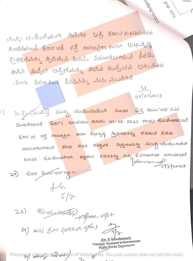 ಆದರೂ ಅಧಿಕಾರಿಗಳು ಕಡತವನ್ನು ಜುಲೈ 2023ರಲ್ಲಿ ಮರು ಮಂಡಿಸಿದ್ದರು. ಇದಕ್ಕೆ ಸಚಿವ ಜಾರಕಿಹೊಳಿ ಅವರ ಆಪ್ತ ಕಾರ್ಯದರ್ಶಿ ಅವರ ಸೂಚನೆಯಂತೆ ಮಂಡಿಸಿದ್ದ ಕಡತಕ್ಕೆ ಸಚಿವರು ಅನುಮೋದಿಸಿದ್ದರು ಎಂಬುದು ಟಿಪ್ಪಣಿ ಹಾಳೆಯಿಂದ ಗೊತ್ತಾಗಿದೆ.