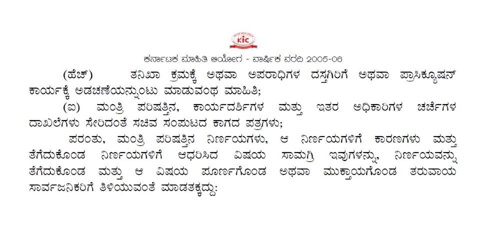 ಯಾವುದೇ ನ್ಯಾಯಾಲಯ ಅಥವಾ ನ್ಯಾಯಾಧೀಕರಣವು ಯಾವ ಮಾಹಿತಿ ಪ್ರಕಟಣೆಯನ್ನು ಸ್ಪಷ್ಟವಾಗಿ ನಿಷೇಧಿಸಿದೆಯೋ ಅಥವಾ ಯಾವ ಮಾಹಿತಿಯನ್ನು ಬಹಿರಂಗಪಡಿಸುವುರಿಂದ ನ್ಯಾಯಾಲಯ ನಿಂದನೆಯಾಗಬಹುದೋ ಅಂಥ ಮಾಹಿತಿ, ಯಾವ ಮಾಹಿತಿಯನ್ನು ಬಹಿರಂಗಪಡಿಸುವುದರಿಂದ ಸಂಸತ್ತು ಅಥವಾ ರಾಜ್ಯ ವಿಧಾನಮಂಡಲದ ಹಕ್ಕುಚ್ಯುತಿ ಉಂಟಾಗುವುದೋ ಅಂಥ ಮಾಹಿತಿ ನೀಡಲು ಅವಕಾಶವಿಲ್ಲ.