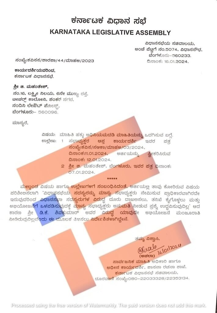 ವಿಧಾನಸಭೆ ಸಚಿವಾಲಯವು 2024ರ ಜನವರಿ 16ರಂದು ಲಿಖಿತ ಉತ್ತರ ಒದಗಿಸಿದೆ.