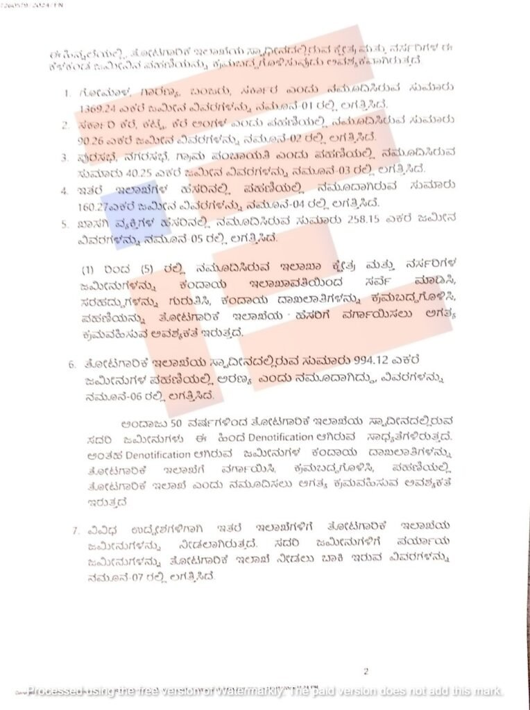 ಇದಲ್ಲದೇ ತೋಟಗಾರಿಕೆ ಇಲಾಖೆಯ ಸ್ವಾಧೀನದಲ್ಲಿರುವ ಸುಮಾರು 994.12 ಎಕರೆ ಜಮೀನುಗಳ ಪಹಣಿಯಲ್ಲಿ ಅರಣ್ಯ ಎಂದು ನಮೂದಾಗಿದೆ. ‘ಅಂದಾಜು 50 ವರ್ಷಗಳಿದ ತೋಟಗಾರಿಕೆ ಇಲಾಖೆ ಸ್ವಾಧೀನದಲ್ಲಿರುವ ಈ ಜಮೀನುಗಳು ಈ ಹಿಂದೆಯೇ ಡಿ ನೋಟಿಫಿಕೇಷನ್ ಆಗಿರುವ ಸಾಧ್ಯತೆಗಳಿರುತ್ತವೆ. ಅಂತಹ ಡಿ ನೋಟಿಫಿಕೇಷನ್ ಆಗಿರುವ ಜಮೀನುಗಳ ಕಂದಾಯ ದಾಖಲಾತಿಗಳನ್ನು ತೋಟಗಾರಿಕೆ ಇಲಾಖೆಗೆ ವರ್ಗಾಯಿಸಿ ಕ್ರಮಬದ್ಧಗೊಳಿಸಿ ಪಹಣಿಯಲ್ಲಿ ತೋಟಗಾರಿಕೆ ಇಲಾಖೆ ಎಂದು ನಮೂದಿಸಲು ಅಗತ್ಯ ಕ್ರಮ ವಹಿಸಬೇಕಿದೆ,’ ಎಂದು ಪತ್ರದಲ್ಲಿ ಕೋರಿದ್ದಾರೆ.
