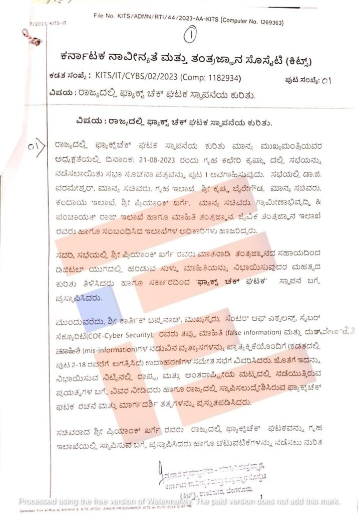 ಸಾಮಾಜಿಕ ಮಾಧ್ಯಮ ಹಾಗೂ ಜಾಲತಾಣಗಳ ಮೂಲಕ ಸುಳ್ಳು ಸುದ್ದಿ ಹರಡುವವರ ಪತ್ತೆಗಾಗಿ ಮಾಹಿತಿ ತಿರುಚುವಿಕೆ ಪತ್ತೆ ಘಟಕಕ್ಕೆ ವಾರ್ಷಿಕ 7.50 ಕೋಟಿ ರು.ದ ಪ್ರಸ್ತಾವನೆ ಸಲ್ಲಿಕೆಯಾಗಿದೆ.  ಆದರೆ ಇದುವರೆಗೂ ಈ ಬಗ್ಗೆ ಯಾವುದೇ ಅಂತಿಮ ತೀರ್ಮಾನವಾಗಿಲ್ಲ. ಹೀಗಾಗಿ ಕಂಪನಿ, ಏಜೆನ್ಸಿ, ಸಂಸ್ಥೆಗಳಿಗೆ ಕಾರ್ಯಾದೇಶ ನೀಡಿಲ್ಲ ಎಂದು ತಿಳಿದು ಬಂದಿದೆ.