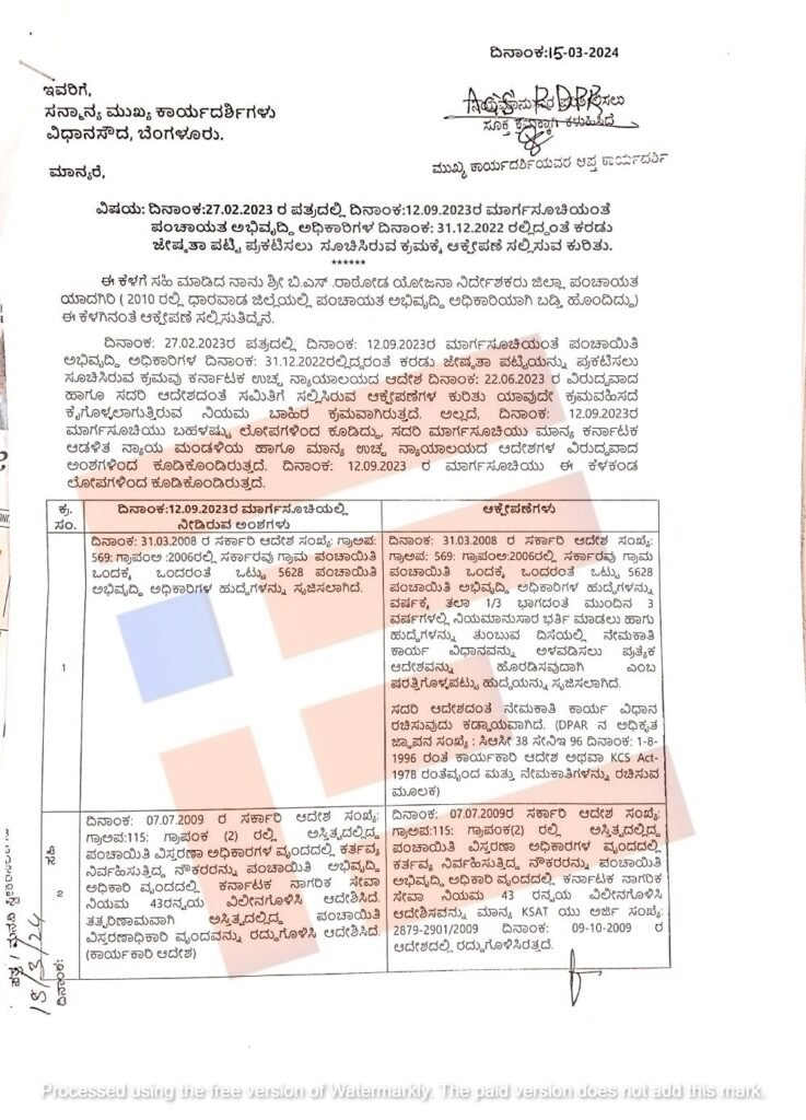 ಬೆಂಗಳೂರು; ರಾಜ್ಯದ ಗ್ರಾಮ ಪಂಚಾಯ್ತಿ ಅಭಿವೃದ್ದಿ ಅಧಿಕಾರಿ ವೃಂದದ ಜೇಷ್ಠತಾ ಪಟ್ಟಿ ತಯಾರಿಸಿರುವ ಮಾರ್ಗಸೂಚಿಗಳು ಲೋಪಗಳಿಂದ ಕೂಡಿದೆ. ಅಲ್ಲದೇ ರಾಜ್ಯ ಕಾಂಗ್ರೆಸ್‌ ಸರ್ಕಾರವು ಜಾರಿಗೆ ಬಂದ ನಂತರ ಹೊರಡಿಸಿರುವ ಮಾರ್ಗಸೂಚಿಗಳು ವ್ಯತಿರಿಕ್ತವಾಗಿವೆ.