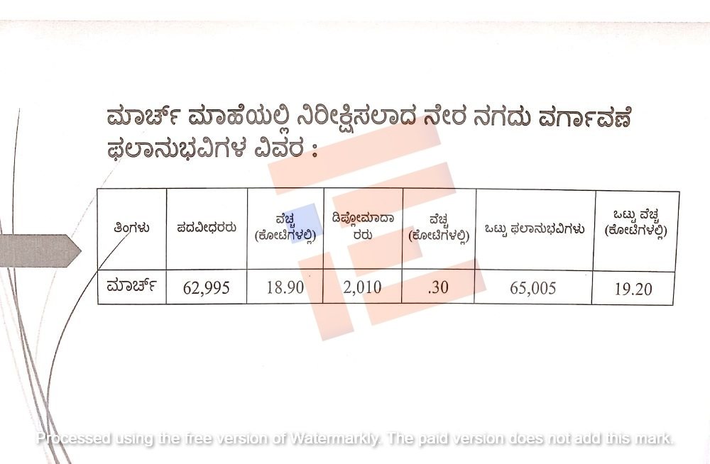 ಮಾರ್ಚ್ ತಿಂಗಳಲ್ಲಿ 62,995 ಪದವೀಧರರಿಗೆ 18.90 ಕೋಟಿ ರು, ಮತ್ತು 2,010 ಡಿಪ್ಲೋಮಾದಾರರಿಗೆ .30 ಕೋಟಿ ರು ಸೇರಿದಂತೆ ಒಟ್ಟಾರೆ 65,005 ಫಲಾನುಭವಿ ಅಭ್ಯರ್ಥಿಗಳಿಗೆ 19.20 ಕೋಟಿ ರು. ವೆಚ್ಚವಾಗಲಿದೆ ಎಂದು ತಿಳಿದು ಬಂದಿದೆ.