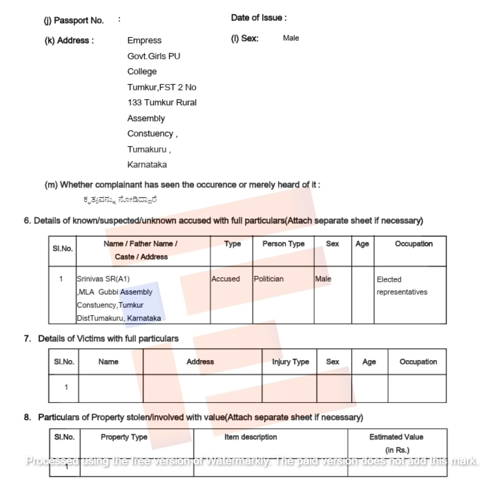 ಕರ್ತವ್ಯದ ಒತ್ತಡದಿಂದ 2024ರ ಮಾರ್ಚ್‌ 25ರ ರಂದು ನೀಡಿರುತ್ತೇನೆ. ಆದ್ದರಿಂದ ಗುಬ್ಬಿ ಶಾಸಕ ಎಸ್‌ ಆರ್‍‌ ಶ್ರೀನಿವಾಸ್‌ ಅವರ ವಿರುದ್ಧ ಕಾನೂನು ಕ್ರಮ ಜರುಗಿಸಬೇಕು ಎಂದು ದೂರಿದ್ದರು ಎಂಬುದು ಎಫ್‌ಐಆರ್‍‌ನಿಂದ ಗೊತ್ತಾಗಿದೆ.