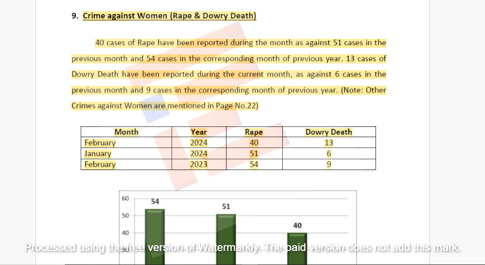 ಫೆಬ್ರುವರಿ 2024ರ ಅಂತ್ಯಕ್ಕೆ ಇಲಾಖೆಯು ಪ್ರಕಟಿಸಿರುವ ಅಂಕಿ ಸಂಖ್ಯೆಗಳನ್ನು ಹೋಲಿಸಿದರೇ ಅಪರಾಧ ಪ್ರಕರಣಗಳ ಸಂಖ್ಯೆಯಲ್ಲಿ ಏರಿಕೆ ಕಂಡಿರುವುದು ಕಂಡು ಬಂದಿದೆ.