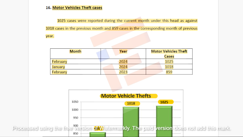 2023ರ ಫೆಬ್ರುವರಿಯಲ್ಲಿ 1,618 ಪ್ರಕರಣಗಳು ವರದಿಯಾಗಿದ್ದವು. ಜನವರಿ 2024ರಲ್ಲಿ ವರದಿಯಾಗಿದ್ದ ಕಳವು ಪ್ರಕರಣಗಳ ಸಂಖ್ಯೆಗೆ ಹೋಲಿಸಿದರೆ ಫೆಬ್ರುವರಿ 2024ರಲ್ಲಿ ಏರಿಕೆ ಕಂಡಿದೆ.