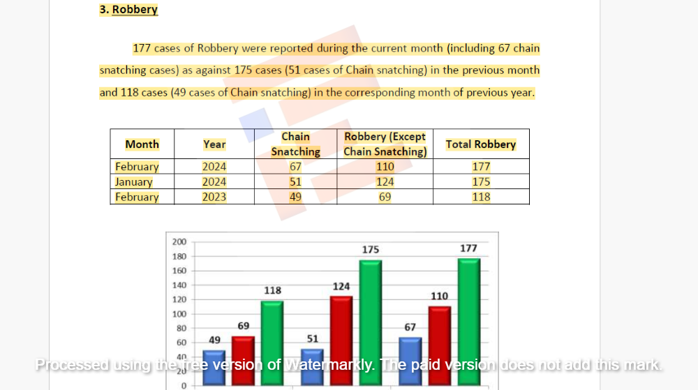 ಜನವರಿ 2024ಕ್ಕೆ ಹೋಲಿಸಿದರೆ ಫೆಬ್ರುವರಿ 2024ರಲ್ಲಿ ದರೋಡೆ ಪ್ರಕರಣಗಳ ಸಂಖ್ಯೆ ಯಲ್ಲಿ ಏರಿಕೆ ಕಂಡಿರುವುದು ಗೊತ್ತಾಗಿದೆ.