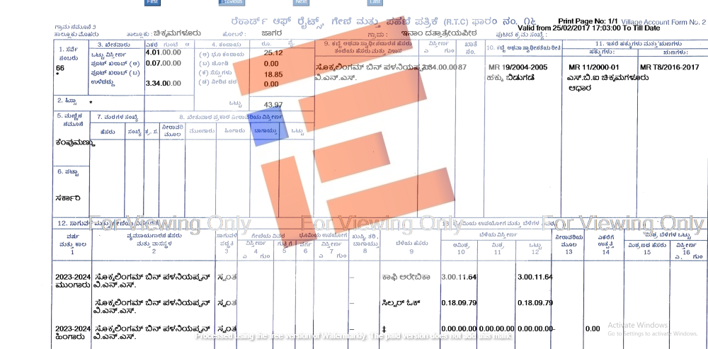 ಈ ಜಮೀನುಗಳ ದಾಖಲೆಗಳಲ್ಲಿ ಈಗಲೂ ಸರ್ಕಾರಿ ಎಂದೇ ನಮೂದಾಗಿದೆ. ಆದರೆ ಈ ಜಮೀನುಗಳನ್ನು ಸೊಕ್ಕಲಿಂಗಂ ಎಂಬುವರು 1994ರ ಜನವರಿ 27ರಂದು ಖರೀದಿಸಿದ್ದರು. 1994ರಿಂದಲೂ ಈಗಿನವರೆಗೂ ಈ ಜಮೀನುಗಳು ಸೊಕ್ಕಲಿಂಗಂ ಎಂಬುವರು ಹಕ್ಕುದಾರರಾಗಿದ್ದಾರೆ ಎಂಬುದು ಪಹಣಿಯಿಂದ ತಿಳಿದು ಬಂದಿದೆ.