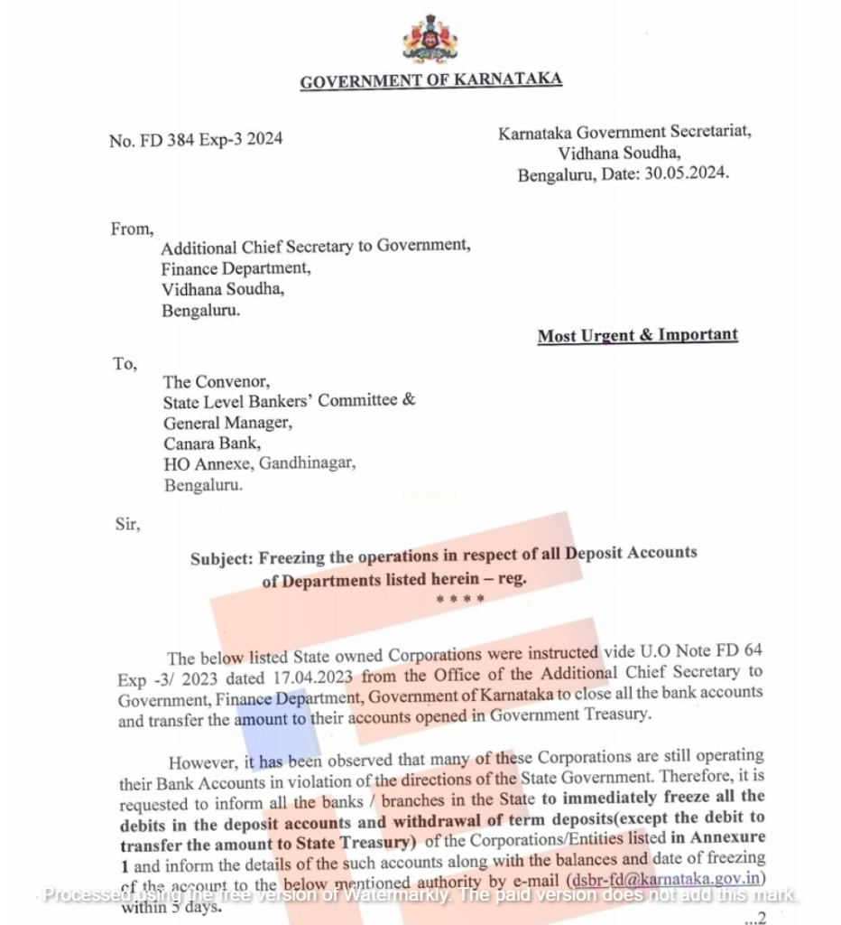 2024ರ ಏಪ್ರಿಲ್‌ನಲ್ಲಿ ಹೊರಡಿಸಿದ್ದ ಆದೇಶವನ್ನು ಪುನರುಚ್ಛರಿಸಿರುವ ಇಲಾಖೆಯು, ಸಮುದಾಯಗಳ ಅಭಿವೃದ್ಧಿ ನಿಗಮ, ಮಂಡಳಿಗಳು ಖಾಸಗಿ ಬ್ಯಾಂಕ್‌ಗಳಲ್ಲಿ ತೆರೆದಿರುವ ಎಲ್ಲಾ ಬಗೆಯ ಖಾತೆಗಳನ್ನೂ ತಕ್ಷಣದಿಂದಲೇ ಸ್ಥಗಿತಗೊಳಿಸಬೇಕು ಎಂದು ಕಟ್ಟುನಿಟ್ಟಿನ ಸೂಚನೆ ನೀಡಿದೆ. ಅಲ್ಲದೇ ವಿವಿಧ ಸಮುದಾಯಗಳ ಅಭಿವೃದ್ಧಿ ನಿಗಮ ಮತ್ತು ಮಂಡಳಿಗಳು ಯಾವ್ಯಾವ ಬ್ಯಾಂಕ್‌ನಲ್ಲಿ ಎಷ್ಟೆಷ್ಟು ಹಣವನ್ನು ಇರಿಸಿದೆ ಎಂಬ ಪಟ್ಟಿಯನ್ನೂ ಮಾಡಿದೆ.