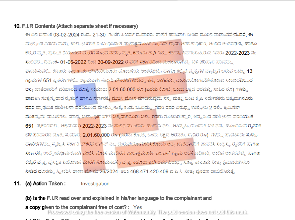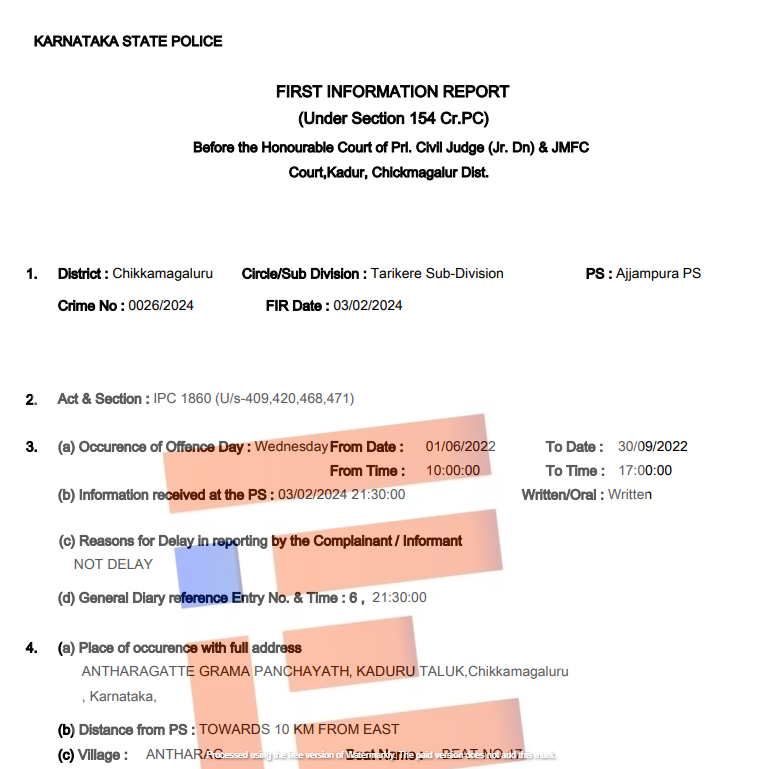 ಈ ಪ್ರಕರಣದ ಕುರಿತು ಕಾಂಗ್ರೆಸ್ ಸರ್ಕಾರದ ಅವಧಿಯಲ್ಲಿ ಅಂದರೇ 2024ರ ಫೆ.2ರಂದು ಅಜ್ಜಂಪುರ ಪೊಲೀಸ್ ಠಾಣೆಯಲ್ಲಿ ಎಫ್ಐಆರ್ ಕೂಡ ದಾಖಲಾಗಿತ್ತು. ಇದರ ಪ್ರತಿಯು ‘ದಿ ಫೈಲ್’ಗೆ ಲಭ್ಯವಾಗಿದೆ.