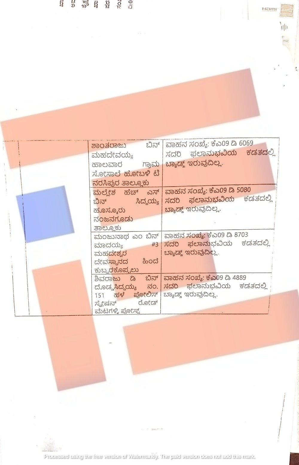 ಟಿ ನರಸೀಪುರ ತಾಲೂಕಿನ ಸೋಸಲೆ ಹೋಬಳಿಯ ಹಾಲವಾರ ಗ್ರಾಮದ ಶಾಂತರಾಜು (ವಾಹನ ಸಂಖ್ಯೆ ; ಕೆಎ 09 ಡಿ 6069), ನಂಜನಗೂಡು ತಾಲೂಕಿನ ಮಲ್ಲೇಶ ಹೆಚ್ ಎಸ್ (ವಾಹನ ಸಂಖ್ಯೆ; ಕೆಎ 09 ಡಿ 5080), ಕುಬ್ಬರಕೊಪ್ಪಲಿನ ಮಂಜುನಾಥ್ ಎಂ (ವಾಹನ ಸಂಖ್ಯೆ; ಕೆಎ 09 ಡಿ 8703), ಮೇಟಗಳ್ಳಿಯ ಶಿವರಾಜು ಡಿ (ವಾಹನ ಸಂಖ್ಯೆ; ಕೆಎ 09 ಡಿ 4889) ಇವರಿಗೂ ವಾಹನ ಚಾಲನೆಯ ಬ್ಯಾಡ್ಜ್ ಇರಲಿಲ್ಲ. ಆದರೂ ಸಹಾಯಧನ ಬಿಡುಗಡೆ ಮಾಡಲಾಗಿತ್ತು ಎಂದು ವರದಿಯಲ್ಲಿ ವಿವರಿಸಿದೆ.