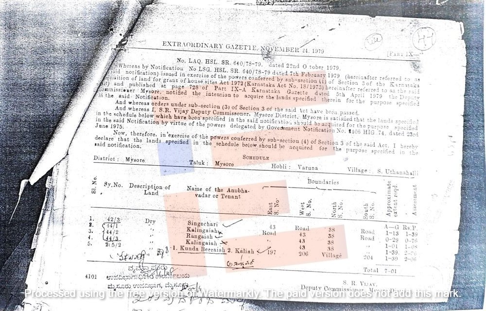 ಈ ಆದೇಶದ ಅನುಸಾರ ಜಮೀನಿನ ಮಾಲೀಕರುಗಳಿಗೆ ಪರಿಹಾರವನ್ನು ನೀಡಿ ಸದರಿ ಜಮೀನುಗಳಲ್ಲಿ ನಿವೇಶನಗಳನ್ನು ಹಂಚಿಕೆ ಮಾಡಿ ಹಕ್ಕು ಪತ್ರಗಳನ್ನು ವಿತರಣೆ ಮಾಡಲಾಗಿತ್ತು ಎಂಬುದು ಕೃಷ್ಣ ಅವರು ದೂರಿನೊಂದಿಗೆ ಸಲ್ಲಿಸಿರುವ ದಾಖಲೆಗಳಿಂದ ತಿಳಿದು ಬಂದಿದೆ.