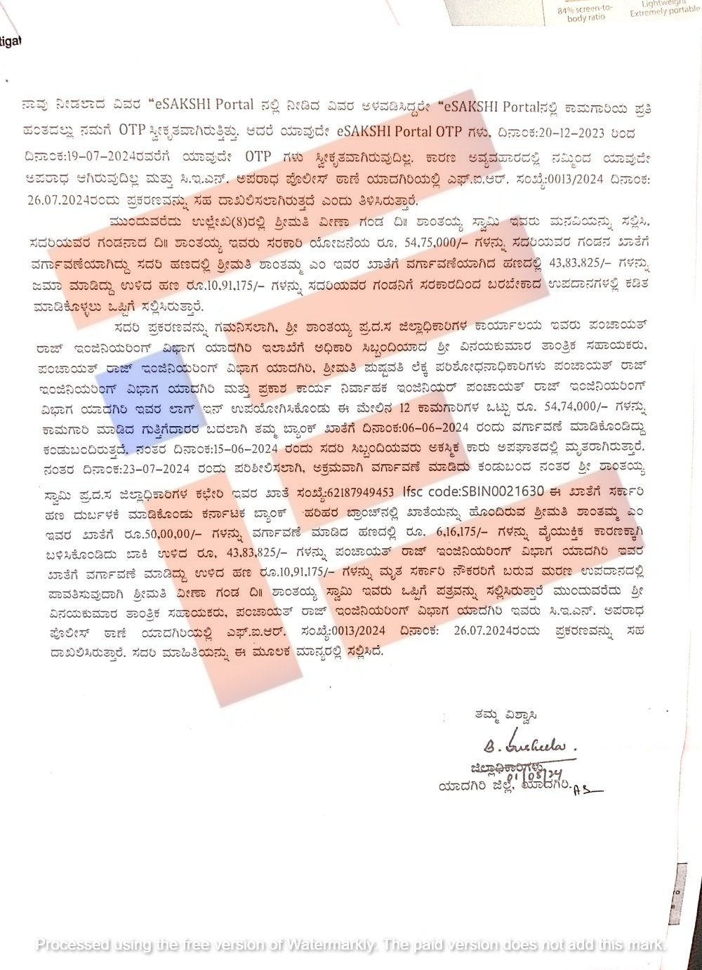 ಇ-ಸಾಕ್ಷಿ, ಲಾಗಿನ್‌ ಐಡಿ ದುರ್ಬಳಕೆ; ಗುತ್ತಿಗೆದಾರರಲ್ಲದವರಿಗೆ ಅಕ್ರಮವಾಗಿ ಲಕ್ಷಾಂತರ ರು. ವರ್ಗಾವಣೆ
