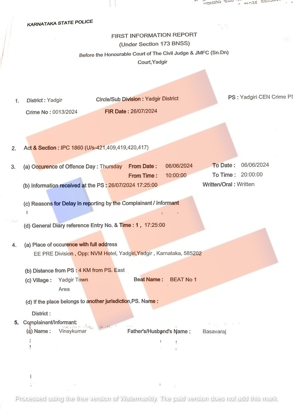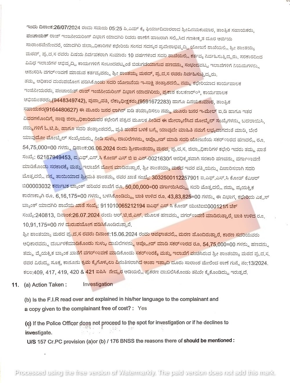 ಇದೇ ಪ್ರಕರಣಕ್ಕೆ ಸಂಬಂಧಿಸಿದಂತೆ ಯಾದಗಿರಿ ಸಿಇಎನ್‌ ಪೊಲೀಸ್‌ ಠಾಣೆಯಲ್ಲಿ ಆಪಾದಿತ ಅಧಿಕಾರಿಗಳ ವಿರುದ್ಧ 2024ರ ಜುಲೈ 26ರಂದು ಎಫ್‌ಐಆರ್‍‌ ಕೂಡ ದಾಖಲಾಗಿತ್ತು. ಇದರ ಪ್ರತಿಯೂ ‘ದಿ ಫೈಲ್‌’ಗೆ ಲಭ್ಯವಾಗಿದೆ.