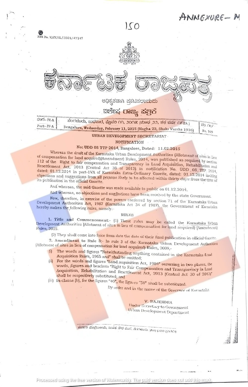 ಆದರೆ ಸರ್ಕಾರದ ಡಿನೋಟಿಫಿಕೇಷನ್ ನಡವಳಿಯು ಪ್ರಾಧಿಕಾರದ ತಾಂತ್ರಿಕ ಸಾಖೆಯ ಗಮನಕ್ಕೆ ಬಾರದೇ ಇರುವುದರಿಂದ ಈ ಜಮೀನನ್ನು ಪೂರ್ಣ ಪ್ರಮಾಣದಲ್ಲಿ ಪ್ರಾಧಿಕಾರವು ಅಭಿವೃದ್ಧಿ ಪಡಿಸಲಾಗಿತ್ತು.