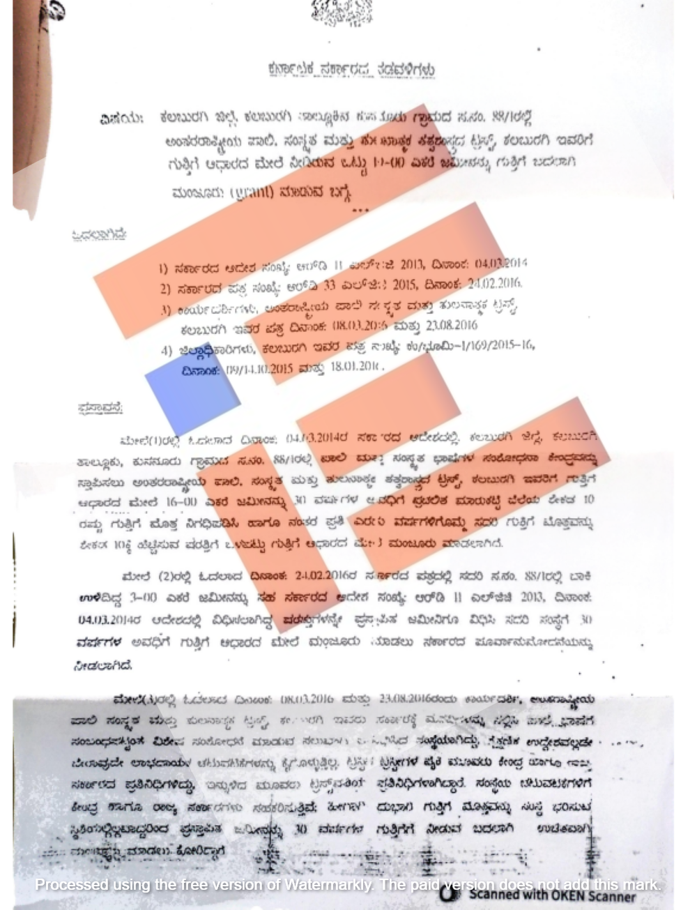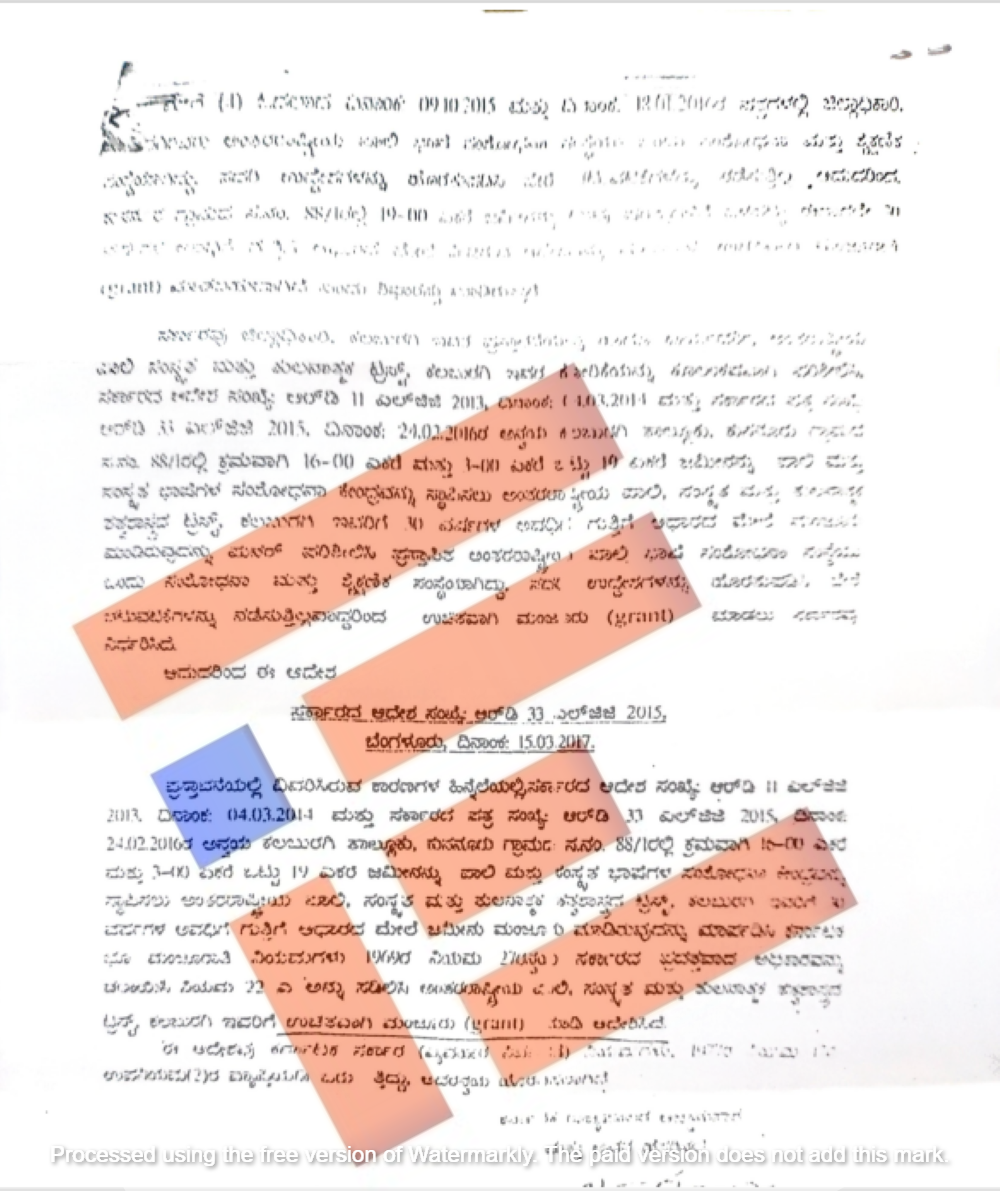 ಗುತ್ತಿಗೆ ಮಂಜೂರಾತಿ ಆದೇಶ ಹೊರಬಿದ್ದ ಎರಡೇ ವರ್ಷದಲ್ಲಿ ಅಂದರೇ 2016ರಲ್ಲಿ ಮತ್ತೊಂದು ಆದೇಶವನ್ನು ಹೊರಡಿಸಲಾಗಿತ್ತು. ಇದರ ಪ್ರಕಾರ ಸರ್ವೆ ನಂಬರ್ 88/1ರಲ್ಲಿ ಬಾಕಿ ಉಳಿದಿದ್ದ 3 ಎಕರೆ ಜಮೀನನ್ನೂ ಸಹ 2014ರ ಮಾರ್ಚ್ 4ರ ಆದೇಶದಲ್ಲಿ ವಿಧಿಸಿದ್ದ ಷರತ್ತುಗಳನ್ನೇ ಪ್ರಸ್ತಾಪಿತ ಜಮೀನಿಗೂ ವಿಧಿಸಿತ್ತು. ಈ ಸಂಸ್ಥೆಗೆ 30 ವರ್ಷಗಳ ಅವಧಿಗೆ ಗುತ್ಗಿಗೆ ಆಧಾರದ ಮೇಲೆ ಪೂರ್ವಾನುಮೋದನೆ ನೀಡಿತ್ತು ಎಂಬುದು ಆದೇಶದಿಂದ ಗೊತ್ತಾಗಿದೆ.