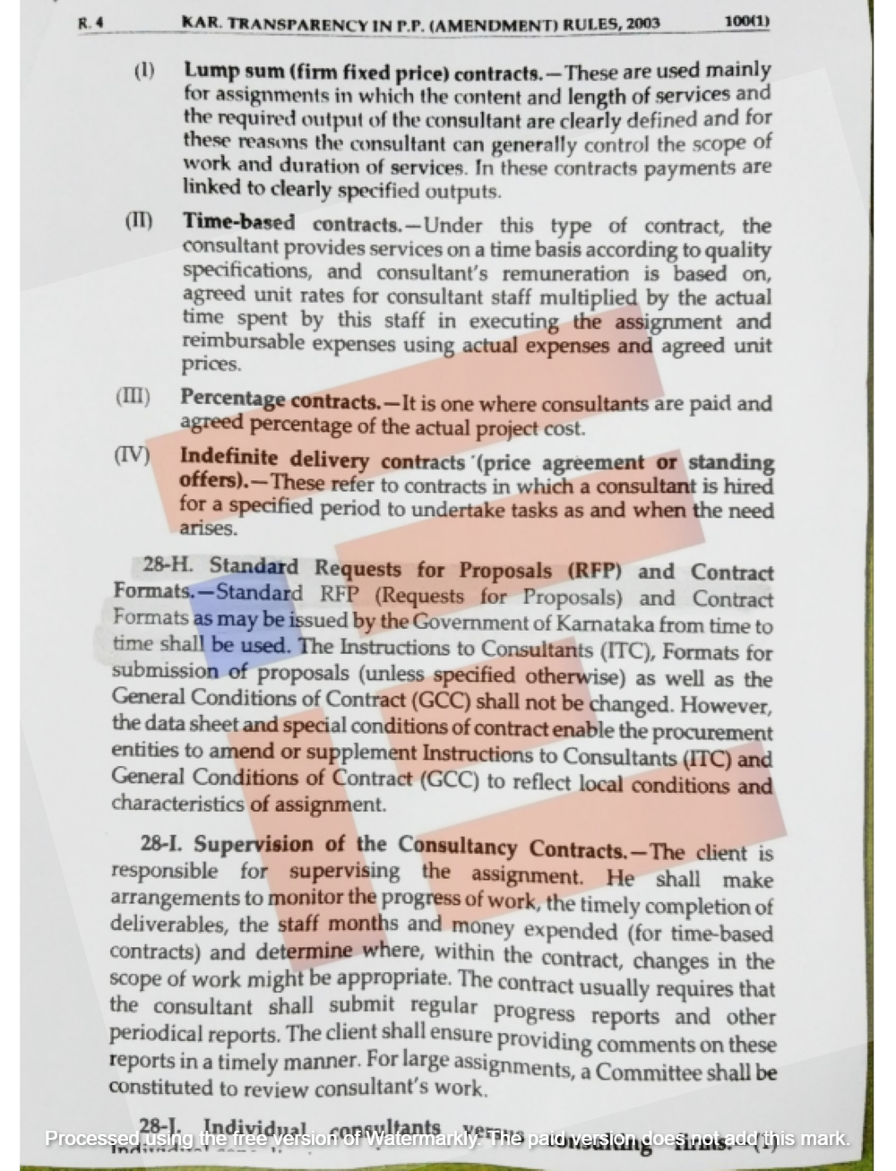 ಕೆಟಿಪಿಪಿ ಕಾಯ್ದೆ 2000 ಅಧ್ಯಾಯ VI A, ನಿಯಮ 28-Hರ ಪ್ರಕಾರ QCBS ಮಾದರಿ ಟೆಂಡರ ಆಹ್ವಾನಿಸಲು ಕನಾ೯ಟಕ ಸಕಾ೯ರ ಆಗಿಂದ್ದಾಗೆ ನಿಗದಿಪಡಿಸುವ ಟೆಂಡರ್‌ ದಸ್ತಾವೇಜನ್ನು ಕಡ್ಡಾಯವಾಗಿ ಉಪಯೋಗಿಸಬೇಕು. ಅಲ್ಲದೇ ಆರ್ಥಿಕ ಇಲಾಖೆಯು ನಿಗದಿಪಡಿಸಿರುವ 10 ಲಕ್ಷ ರು ಮೇಲ್ಪಟ್ಟ ಕ್ಯೂಸಿಬಿಸಿಎಸ್‌ (QCBS) ಟೆಂಡರ್‌ ಆಹ್ವಾನಿಸಲು K/C – 4 RFP ದಾಖಲೆಯನ್ನು ಕಡ್ಡಾಯವಾಗಿ ಬಳಸಬೇಕು.