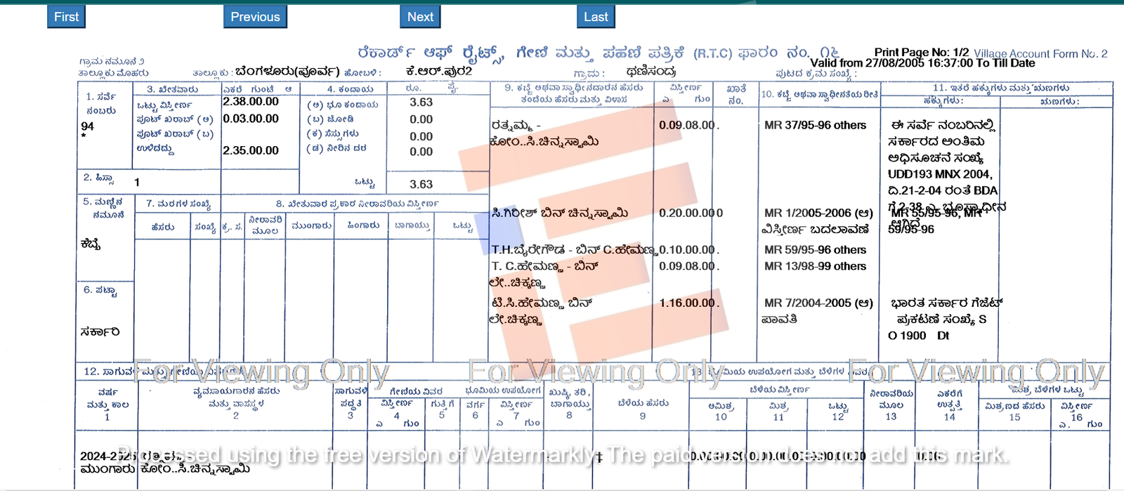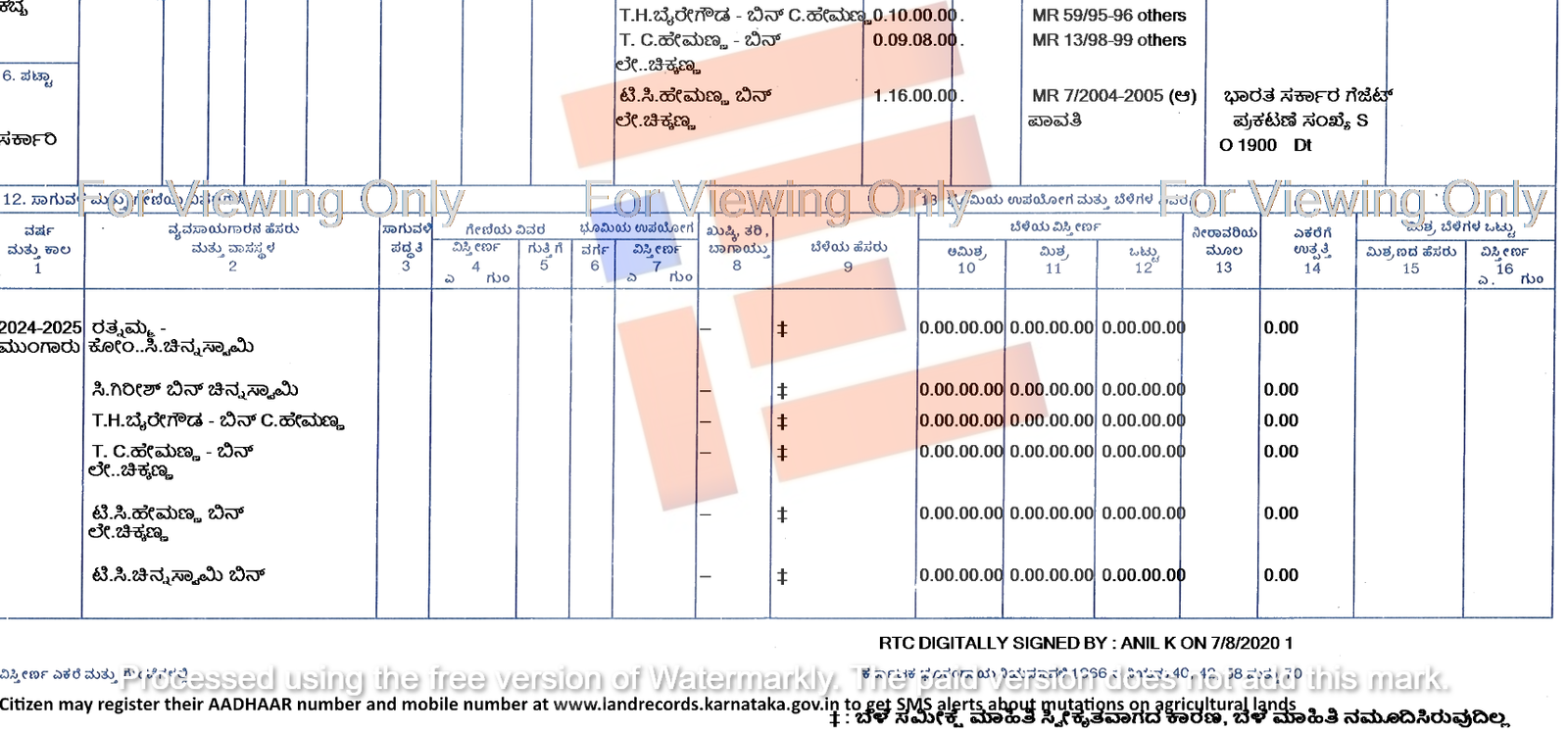 ಈ ಜಮೀನಿನಲ್ಲಿ ರತ್ನಮ್ಮ, ಸಿ ಗಿರೀಶ್, ಟಿ ಹೆಚ್ ಬೈರೇಗೌಡ, ಟಿ ಸಿ ಹೇಮಣ್ಣ ಅವರು ಸ್ವಾಧೀನದಲ್ಲಿರುವುದು ಭೂಮಿ ದಾಖಲೆಗಳಿಂದ ಗೊತ್ತಾಗಿದೆ.