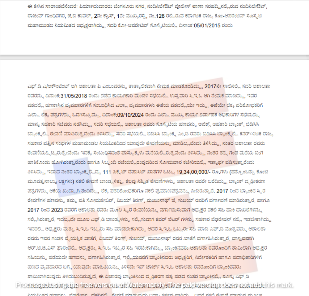ಈ ಪ್ರಕರಣದಲ್ಲಿ ಕರ್ನಾಟಕ ರಾಜ್ಯ ಅಪೆಕ್ಸ್ ಬ್ಯಾಂಕ್ ಮತ್ತು ಬಿಡಿಸಿಸಿ ಬ್ಯಾಂಕ್ ಅಧಿಕಾರಿ, ಸಿಬ್ಬಂದಿಯೂ ಶಾಮೀಲಾಗಿದ್ದಾರೆ. ಸಹಕಾರ ಸಚಿವ ಕೆ ಎನ್ ರಾಜಣ್ಣ ಅವರು 2024ರ ಅಕ್ಟೋಬರ್ 9ರಂದು ನಡೆಸಿದ್ದ ಮುಖ್ಯ ಕಾರ್ಯನಿರ್ವಾಹಕ ಅಧಿಕಾರಿಗಳ ಸಭೆಯಲ್ಲಿ ಈ ವಿಚಾರವು ಬೆಳಕಿಗೆ ಬಂದಿದೆ.