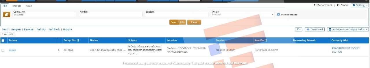 ಸದ್ಯ ಈ ಕಡತವು 2024ರ ಅಕ್ಟೋಬರ್ 19ರ ಅಂತ್ಯಕ್ಕೆ ಆರ್ಥಿಕ ಇಲಾಖೆಯಲ್ಲಿದೆ.