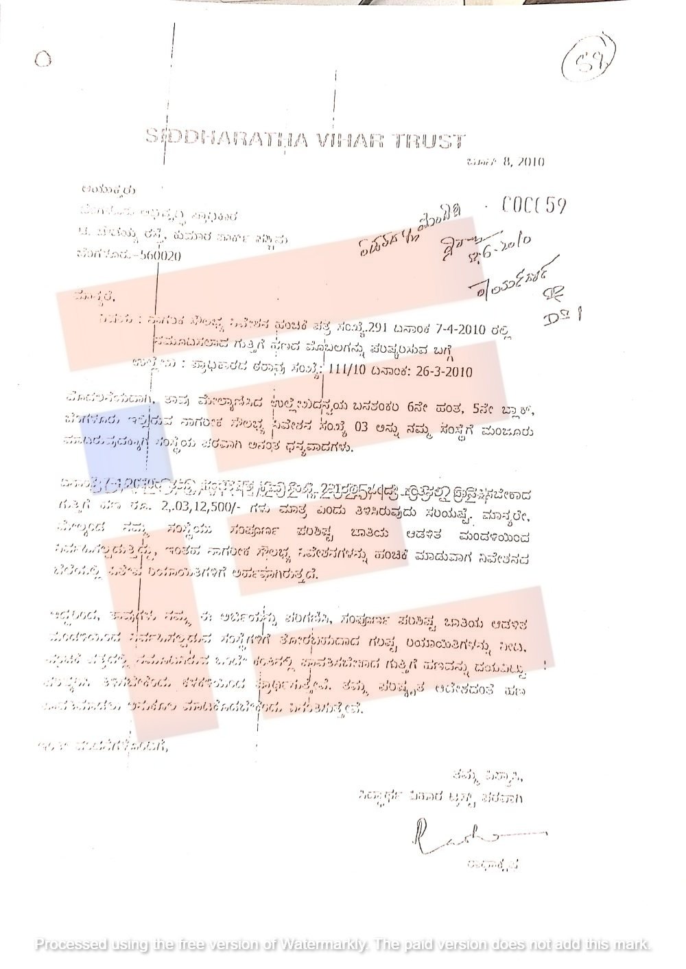 ಕಡತದ ಪುಟ ಸಂಖ್ಯೆ 28ರಿಂದ 50ರಲ್ಲಿರುವ ಟ್ರಸ್ಟ್ ಡೀಡ್ ನಕಲಿನಿಂದ ಕಂಡುಬರುವಂತೆ ಸಿದ್ದಾರ್ಥ ವಿಹಾರ ಟ್ರಸ್ಟ್ನ್ನು ಪರಿಶಿಷ್ಟ ಜಾತಿ ಮತತು ಪರಿಶಿಷ್ಟ ಪಂಗಡಗಳ ಹಿತ ಚಿಂತನೆ ಅಥವಾ ಅಭಿವೃದ್ಧಿಯ ಸಲುವಾಗಿ ಮಾತ್ರ ರಚಿಸಿಲ್ಲ.