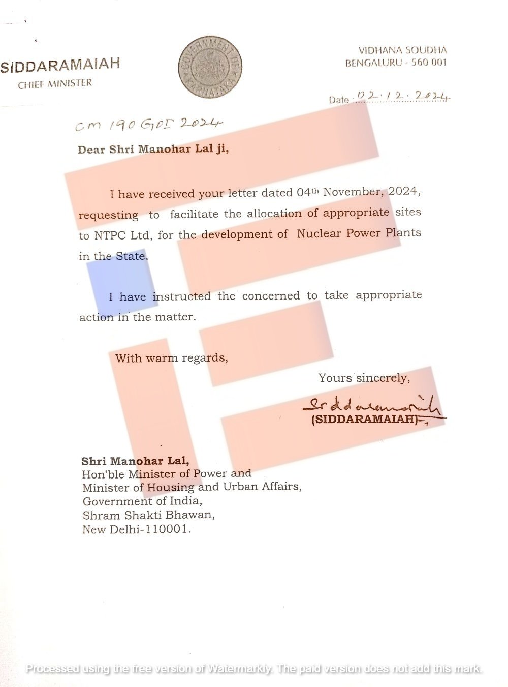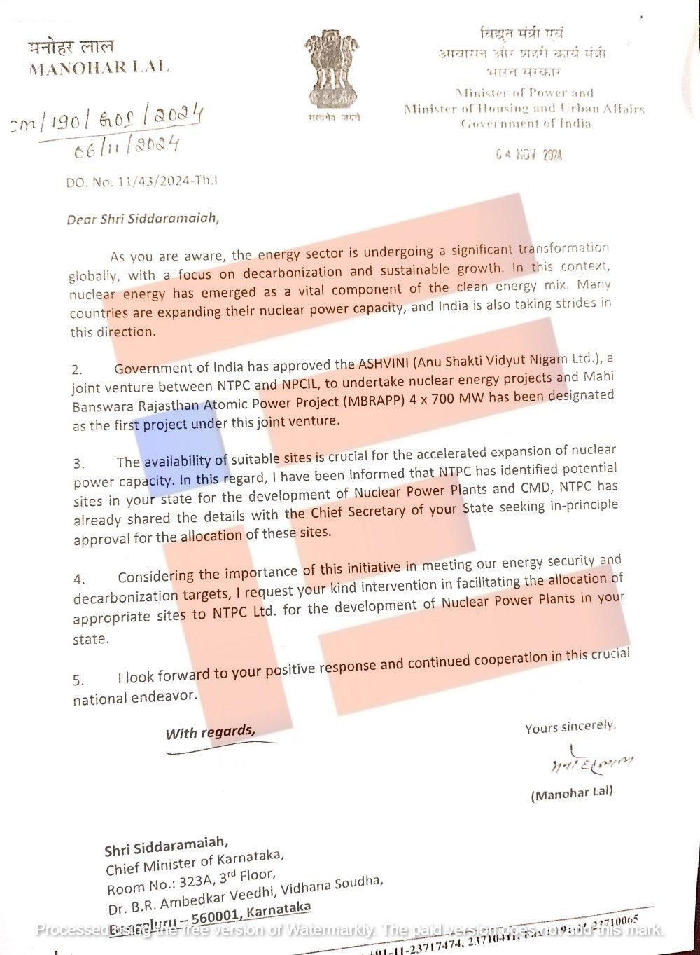 ಅಲ್ಲದೇ ಕೇಂದ್ರ ಇಂಧನ ಸಚಿವ ಮನೋಹರ್ ಲಾಲ್ ಅವರೂ ಸಹ 2024ರ ನವೆಂಬರ್ 4ರಂದು ರಾಜ್ಯದ ಮುಖ್ಯಮಂತ್ರಿ ಸಿದ್ದರಾಮಯ್ಯ ಅವರಿಗೆ ಪತ್ರ ಬರೆದಿದ್ದರು.
