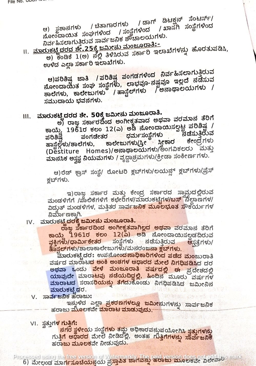 ಮಹಾನಗರಪಾಲಿಕೆಗಳ ಆಸ್ತಿ, ಜಾಗವನ್ನು ಮಾರಾಟ ಮಾಡಲು ಕರ್ನಾಟಕ ಮಹಾನಗರಪಾಲಿಕೆಎಗಳ ಅಧಿನಿಯಮ 1976ರ ಕಲಂ 176 (6) ಅಡಿ ಪಾಲಿಕೆಗಳ ಜಾಗಗಳನ್ನು ಮಾರಾಟ, ಗುತ್ತಿಗೆ ನೀಡಲು ಸರ್ಕಾರದ ಪೂರ್ವಾನುಮೋದನೆ ಪಡೆಯಬೇಕು. ಆದರೆ ನಗರ ಸ್ಥಳೀಯ ಸಂಸ್ಥೆಗಳ ಜಾಗವನ್ನು ವಿಲೇವಾರಿ ಮಾಡುವ ಕುರಿತು 2003ರ ಜೂನ್‌ 2ರಲ್ಲಿ ಮಾರ್ಗಸೂಚಿಗಳನ್ನು ಹೊರಡಿಸಿದೆ. ಇದರ ಪ್ರಕಾರ ಕೆಪಿಸಿಸಿ ಕಚೇರಿ ನಿರ್ಮಾಣ ಮಾಡಲು ಪ್ರಸ್ತಾಪಿಸಿರುವ ಜಾಗವನ್ನು ಹರಾಜು ಮೂಲಕವೇ ವಿಲೇವಾರಿ ಮಾಡಬೇಕು ಎಂದು ಟಿಪ್ಪಣಿ ಹಾಳೆಯಲ್ಲಿ ವಿವರಿಸಿರುವುದು ಗೊತ್ತಾಗಿದೆ.