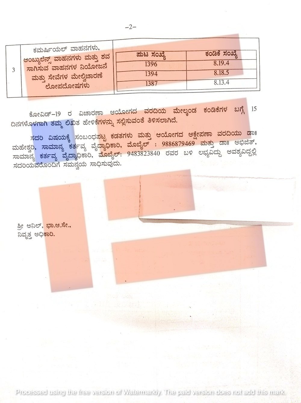 ಅದೇ ರೀತಿ ಕಿದ್ವಾಯಿ ಪ್ರಕರಣ ಹೊರತುಪಡಿಸಿ ಇನ್ನೆರಡು ಅಂಶಗಳ ಕುರಿತು ನಿವೃತ್ತ ಐಎಎಸ್ ಅಧಿಕಾರಿ ಅನಿಲ್‌ ಅವರಿಗೂ ಸಹ ಹೇಳಿಕೆ ನೀಡಲು ನಿರ್ದೇಶಿಸಿರುವುದು ತಿಳಿದು ಬಂದಿದೆ.