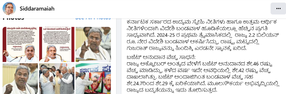 ಅಕ್ಟೋಬರ್ 21ರಂದೇ ನಡೆದಿದ್ದ ಕೆಡಿಪಿ ಸಭೆಯ ನಡವಳಿಯಲ್ಲೇ ದಾಖಲಾಗಿದ್ದರೂ ಮುಖ್ಯಮಂತ್ರಿ ಸಿದ್ದರಾಮಯ್ಯ ಅವರು ಬಜೆಟ್ ಅನುದಾನದಲ್ಲಿ ಶೇ.46ರಷ್ಟು ವೆಚ್ಚ ಮಾಡಲಾಗಿದೆ ಎಂದು ಹೇಳಿದ್ದರು.
