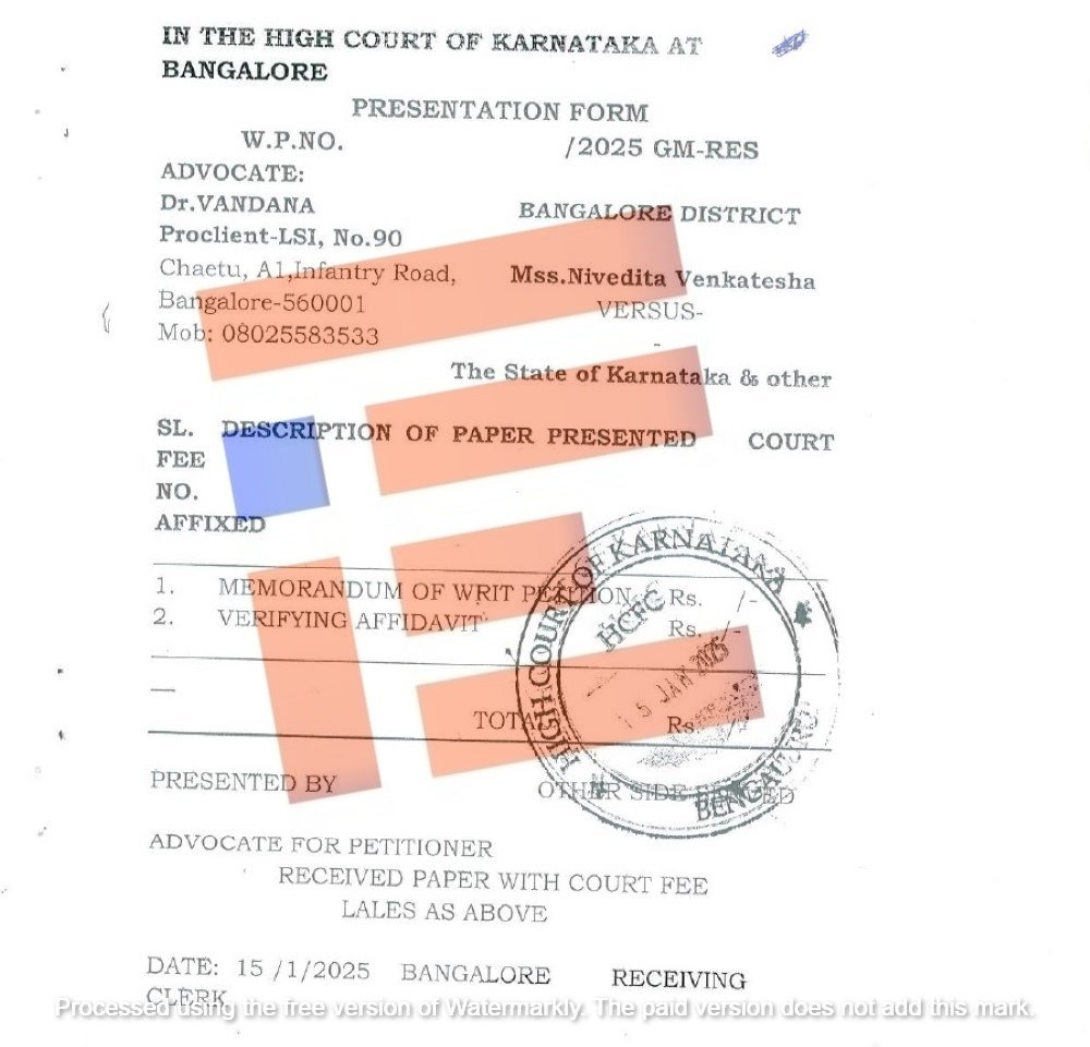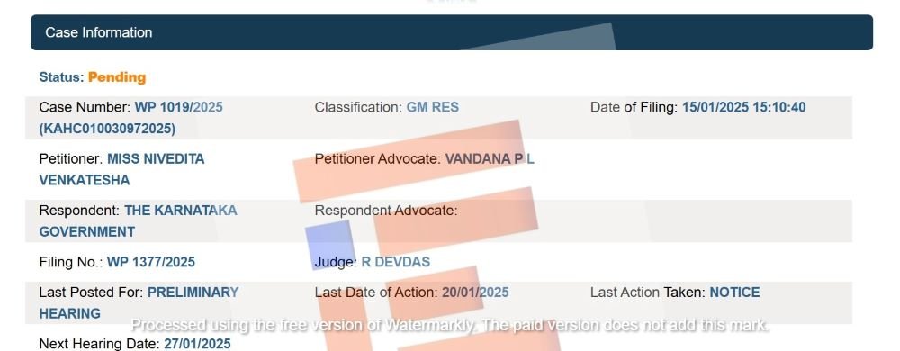 ಈ ಅಂಶವನ್ನು ಅರ್ಜಿದಾರರಾಗಿರುವ ನಿವೇದಿತಾ ವೆಂಕಟೇಶ್ ಅವರು ಅರ್ಜಿಯಲ್ಲಿ ವಿವರಿಸಿರುವುದು ಗೊತ್ತಾಗಿದೆ.