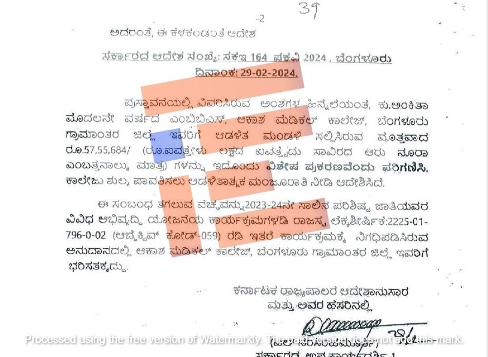 ಆದರೆ ಮತ್ತೊಂದು ವಿಶೇಷ ಪ್ರಕರಣದಡಿಯಲ್ಲಿ ಬೆಂಗಳೂರಿನ ಆಕಾಶ್ ಮೆಡಿಕಲ್ ಕಾಲೇಜಿನಲ್ಲಿ ವ್ಯಾಸಂಗ ಮಾಡುತ್ತಿರುವ ಅಂಕಿತಾ ಎಂಬ ವಿದ್ಯಾರ್ಥಿನಿಗೆ 57,55,684 ರು.ಗಳನ್ನು 2024ರ ಫೆಬ್ರುವರಿ 29ರಂದು ಮಂಜೂರು ಮಾಡಿತ್ತು.