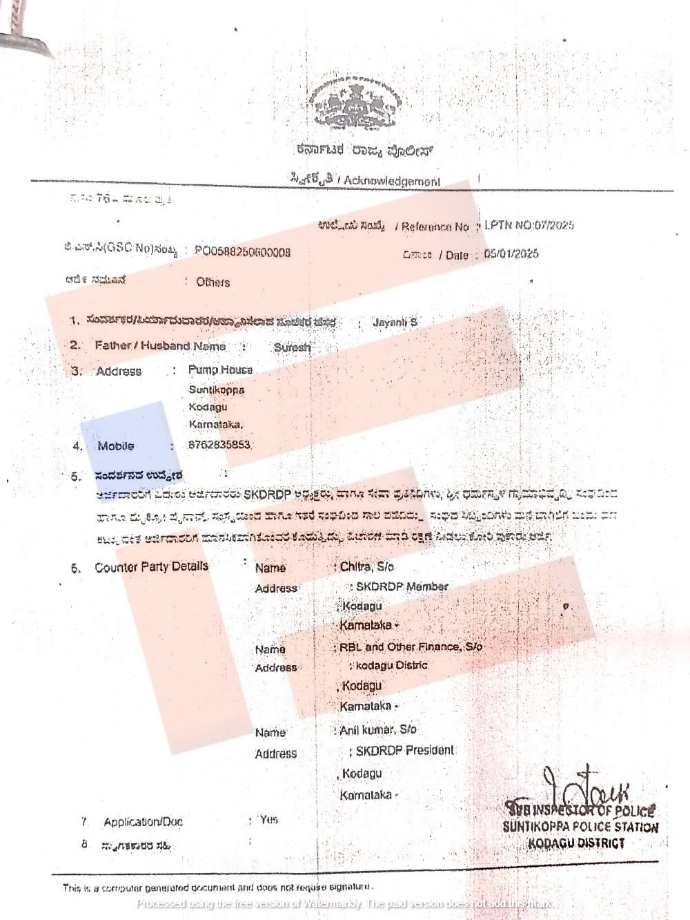 ದೂರರ್ಜಿಯಲ್ಲಿ ಉಲ್ಲೇಖಿಸಿರುವ ಪ್ರಕಾರ ಜಯಂತಿ ಅವರು ಎಸ್ಕೆಡಿಆರ್ಡಿಪಿ ಅಧ್ಯಕ್ಷರು, ಸೇವಾ ಪ್ರತಿನಿಧಿಗಳು, ಶ್ರೀ ಧರ್ಮಸ್ಥಳ ಗ್ರಾಮಾಭಿವೃದ್ಧಿ ಸಂಘದಿಂದ ಹಾಗೂ ಮೈಕ್ರೋ ಫೈನಾನ್ಸ್ ಸಂಸ್ಥೆಯಿಂದ ಹಾಗೂ ಇತರೆ ಸಂಘದಿಂದ ಸಾಲ ಪಡೆದಿದ್ದಾರೆ. ಸಂಘದ ಸಿಬ್ಬಂದಿಗಳು ಮನೆ ಬಾಗಿಲಿಗೆ ಬಂದು ಹಣ ಕಟ್ಟುವಂತೆ ಮಾನಸಿಕವಾಗಿ ತೊಂದರೆ ನೀಡುತ್ತಿದ್ದಾರೆ. ತೊಂದರೆ ಕೊಟ್ಟವರನ್ನು ವಿಚಾರಣೆ ಮಾಡಿ ರಕ್ಷಣೆ ನೀಡಬೇಕು ಎಂದು ದೂರರ್ಜಿಯಲ್ಲಿ ಕೋರಿರುವುದು ಗೊತ್ತಾಗಿದೆ.