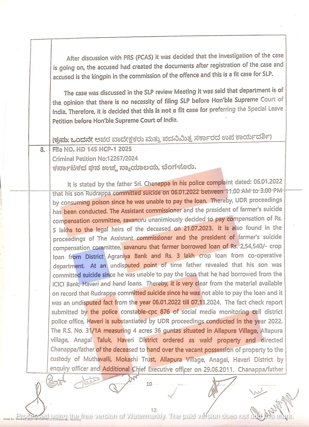 ಲಭ್ಯವಿರುವ ದಾಖಲೆಗಳಿಂದ ರುದ್ರಪ್ಪ ಅವರು ಸಾಲವನ್ನು ಪಾವತಿಸಲು ಸಾಧ್ಯವಾಗದ ಕಾರಣ ಆತ್ಮಹತ್ಯೆ ಮಾಡಿಕೊಂಡಿದ್ದಾರೆ ಎಂಬುದು ಸ್ಪಷ್ಟವಾಗಿದೆ ಮತ್ತು ಇದು 2022 ರಿಂದ 2024 ರವರೆಗೆ ಈ ವಿಚಾರವು ನಿರ್ವಿವಾದದ ಸಂಗತಿಯಾಗಿತ್ತು.