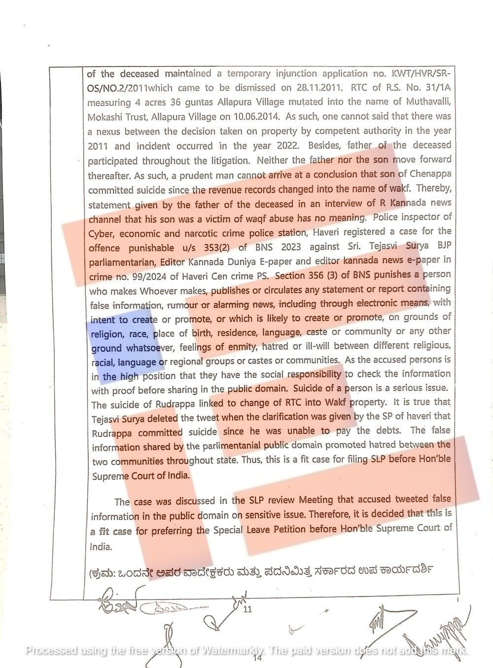 ಆದರೀಗ ವಿಶೇಷ ಮೇಲ್ಮನವಿ ಸಲ್ಲಿಸುವ ಸಂಬಂಧ ನಡೆದ ಸಮಿತಿ ಸಭೆಯು ಭಾರತೀಯ ನ್ಯಾಯ ಸಂಹಿತೆ 356(3)ಯನ್ನು ಮುಂದಿರಿಸಿದೆ.