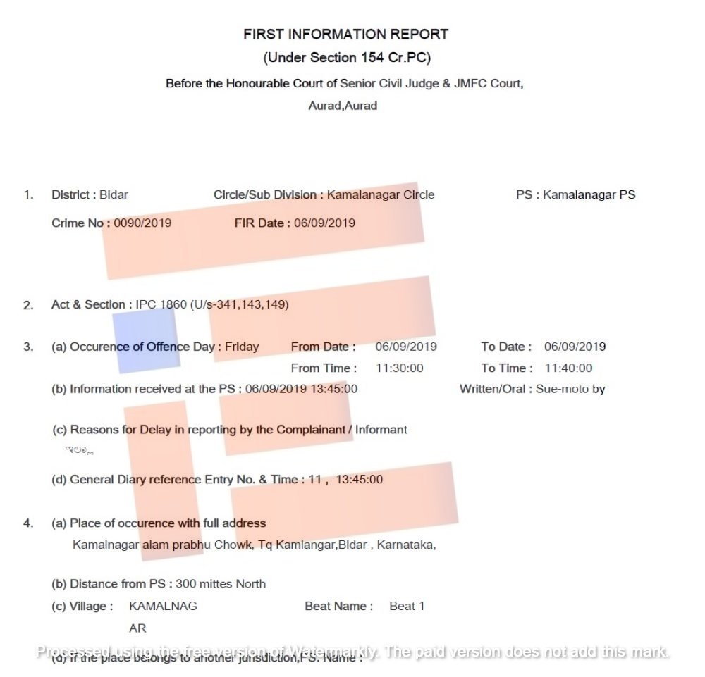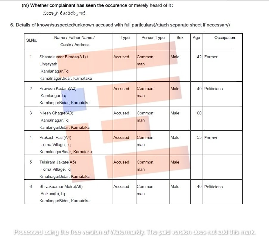 ನರೇಂದ್ರ ಮೋದಿ, ಅಮಿತ್ ಶಾ ಭಾವಚಿತ್ರಕ್ಕೆ ಬೆಂಕಿ ಹಚ್ಚಲು ಪ್ರಯತ್ನ ಮಾಡಿದ್ದರು. ಈ ಘಟನೆಯಿಂದ ಸಾರ್ವಜನಿಕರಿಗೆ ಅಡೆತಡೆ ಮತ್ತು ಕಮಲನಗರ ಪಟ್ಟಣದಲ್ಲಿ ಶಾಂತಿ ಭಂಗ ಉಂಟು ಮಾಡಿದ್ದಾರೆ ಎಂದು ಕಮಲಾನಗರ ಠಾಣಾಧಿಕಾರಿ ದೂರು ದಾಖಲಿಸಿದ್ದರು.