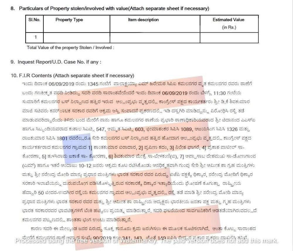 ಈ ದೂರನ್ನಾಧರಿಸಿ ಎಫ್ಐಆರ್ ದಾಖಲಾಗಿತ್ತು.