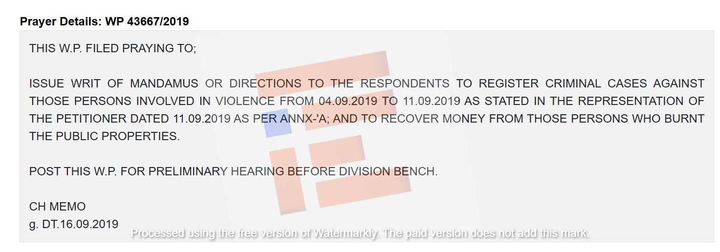 ಡಿ ಕೆ ಶಿವಕುಮಾರ್ ಅವರ ಬಂಧನ ವೇಳೆಯಲ್ಲಿ ಸಾರ್ವಜನಿಕ ಆಸ್ತಿ ಪಾಸ್ತಿಗೆ ಆಗಿದ್ದ ಹಾನಿಯನ್ನು ವಸೂಲು ಮಾಡಬೇಕು ಎಂದು ಸಾಮಾಜಿಕ ಕಾರ್ಯಕರ್ತ ರವಿಕುಮಾರ್ ಕಂಚನಹಳ್ಳಿ ಅವರು ರಿಟ್ ಅರ್ಜಿಯನ್ನು 2019ರಲ್ಲೇ ದಾಖಲಿಸಿದ್ದರು.