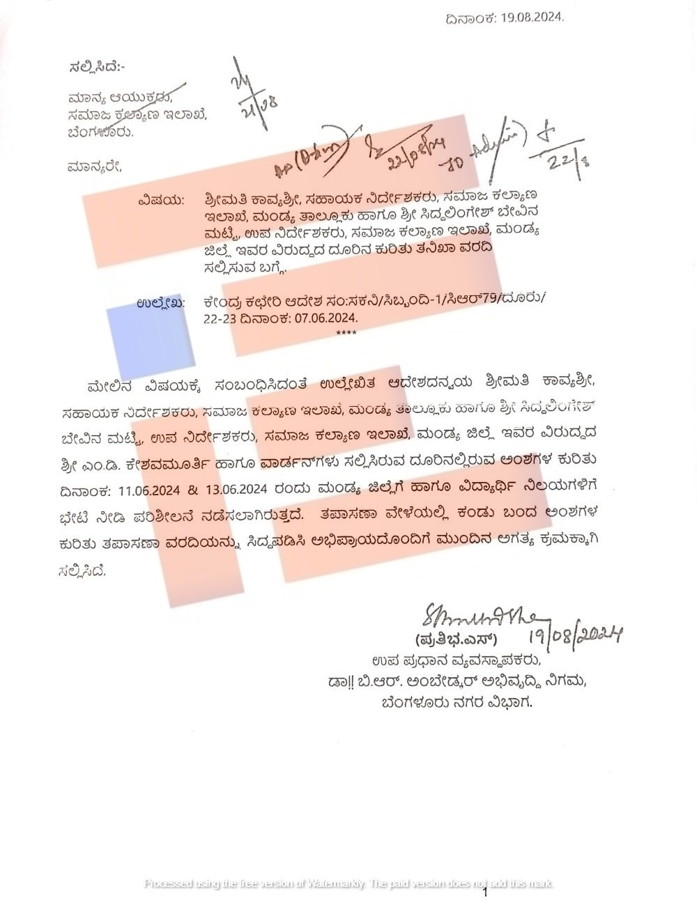 ನಿಗಮದ ಉಪ ವ್ಯವಸ್ಥಾಪಕಿ ಪ್ರತಿಭ ಎಸ್ ಅವರು ಸಮಾಜ ಕಲ್ಯಾಣ ಇಲಾಖೆಯ ಆಯುಕ್ತರಿಗೆ 2024ರ ಆಗಸ್ಟ್ 19ರಂದು ವರದಿ ಸಲ್ಲಿಸಿದ್ದಾರೆ. ಈ ವರದಿಯ ಪ್ರತಿಯು ‘ದಿ ಫೈಲ್’ಗೆ ಲಭ್ಯವಾಗಿದೆ.