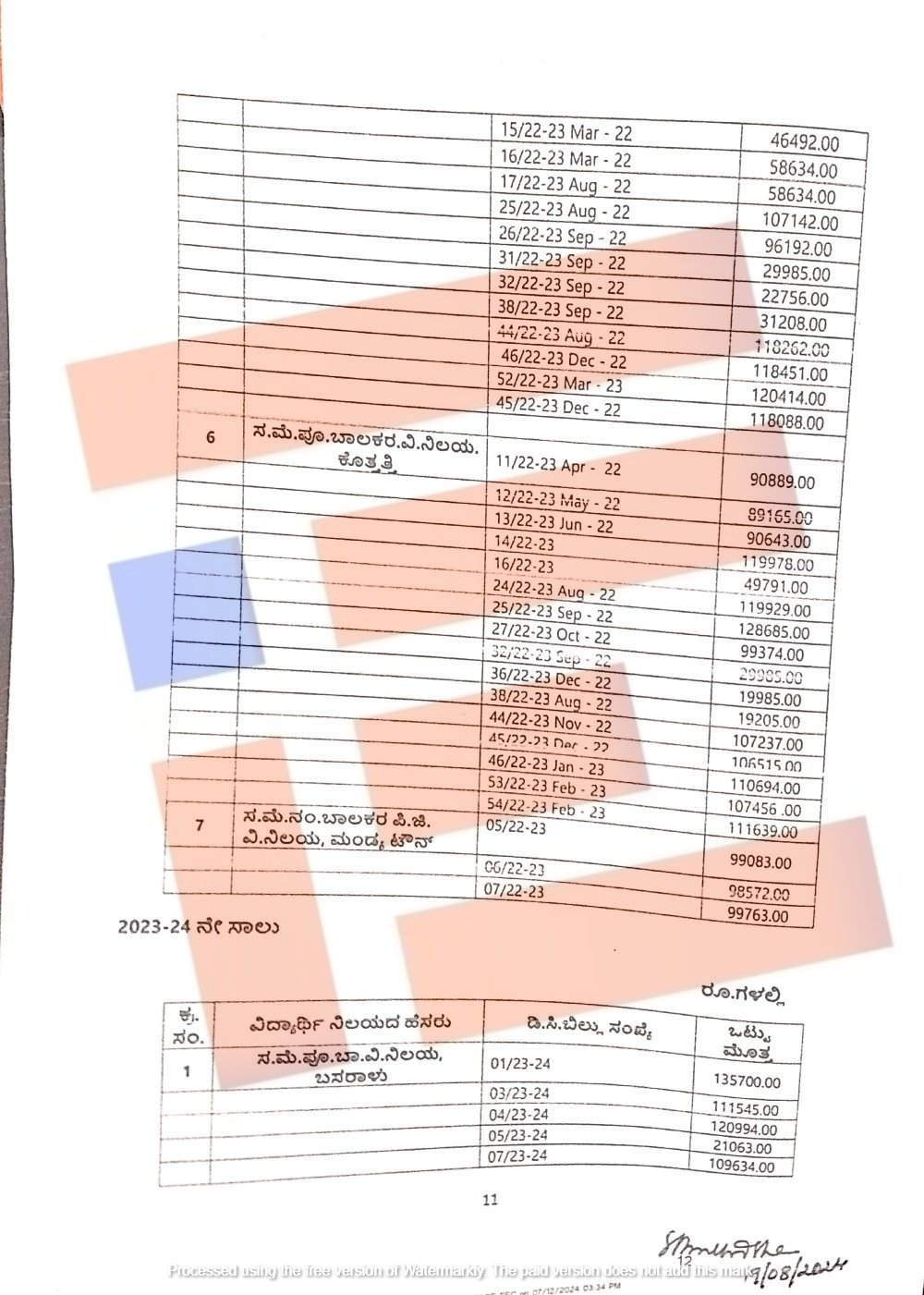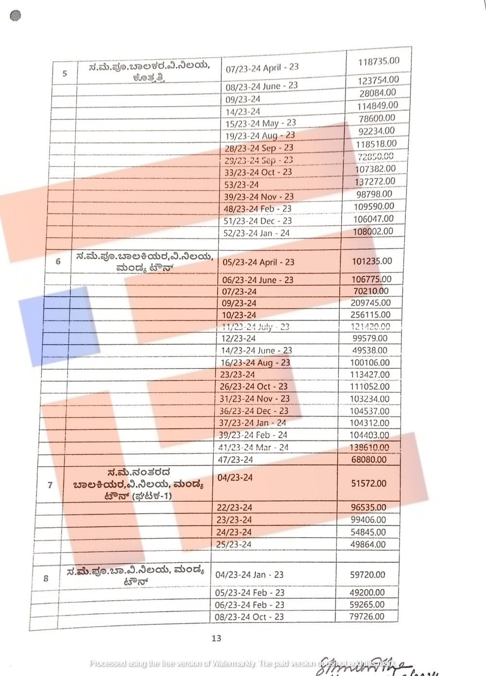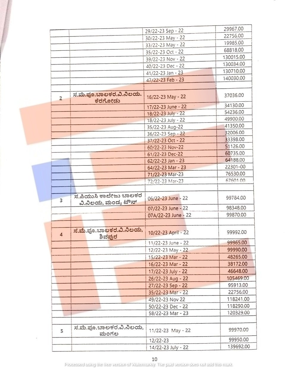 ಶಿವಪುರದಲ್ಲಿರುವ ಸರ್ಕಾರಿ ಮೆಟ್ರಿಕ್ ಪೂರ್ವ ಬಾಲಕರ ವಿದ್ಯಾರ್ಥಿ ನಿಲಯವು 14,92,704 ರು., ಬಸರಾಳುವಿನಲ್ಲಿರುವ ಸರ್ಕಾರಿ ಬಾಲಕರ ವಿದ್ಯಾರ್ಥಿ ನಿಲಯವು 12,94,596 ರು., ಮಂಡ್ಯ ಟೌನ್ನಲ್ಲಿರುವ ಸರ್ಕಾರಿ ಮೆಟ್ರಿಕ್ ಪೂರ್ವ ಬಾಲಕರ ವಿದ್ಯಾರ್ಥಿ ನಿಲಯವು 9,20,474 ರು.ಗಳನ್ನು ಡಿ ಸಿ ಬಿಲ್ ಮೂಲಕ ಹಣ ಸೆಳೆದಿತ್ತು.