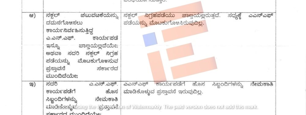ನಕ್ಸಲ್ ಚಟುವಟಿಕೆಯನ್ನು ದಮನಗೊಳಿಸಲು ಕಾರ್ಯನಿರ್ವಹಿಸುತ್ತಿದ್ದ ಎಎನ್ಎ ಫ್ ಕಾರ್ಯಪಡೆ ಇನ್ನೂ ಚಾಲ್ತಿಯಲ್ಲಿದೆಯೇ? ಅಥವಾ ಸದರಿ ನಕ್ಸಲ್ ನಿಗ್ರಹ ಪಡೆಯನ್ನು ಮೊಟಕುಗೊಳಿಸುವ ಪ್ರಸ್ತಾವನೆ ಸರ್ಕಾರದ ಮುಂದಿದೆಯೇ ಎಂದು ವಿಧಾನ ಪರಿಷತ್ ಸದಸ್ಯ ಕುಶಾಲಪ್ಪ ಅವರು ಪ್ರಶ್ನೆ ಕೇಳಿದ್ದರು. ಇದಕ್ಕೆ ಗೃಹ ಸಚಿವ ಡಾ ಜಿ ಪರಮೇಶ್ವರ್ ಅವರು ‘ನಕ್ಸಲ್ ನಿಗ್ರಹಪಡೆಯು ಚಾಲ್ತಿಯಲ್ಲಿರುತ್ತದೆ. ಸದ್ಯಕ್ಕೆ ಎಎನ್ಎಫ್ ಪಡೆಯತನ್ನು ಮೊಟಕುಗೊಳಿಸಿರುವುದಿಲ್ಲ. ಎಎನ್ಎಫ್ ಕಾರ್ಯಪಡೆಗೆ ಹೊಸ ಸಿಬ್ಬಂದಿಗಳನ್ನು ನೇಮಕಾತಿ ಮಾಡಿಕೊಳ್ಳುವ ಪ್ರಸ್ತಾವನೆ ಇರುವುದಿಲ್ಲ,’ ಎಂದು ಉತ್ತರ ಒದಗಿಸಿದ್ದಾರೆ.