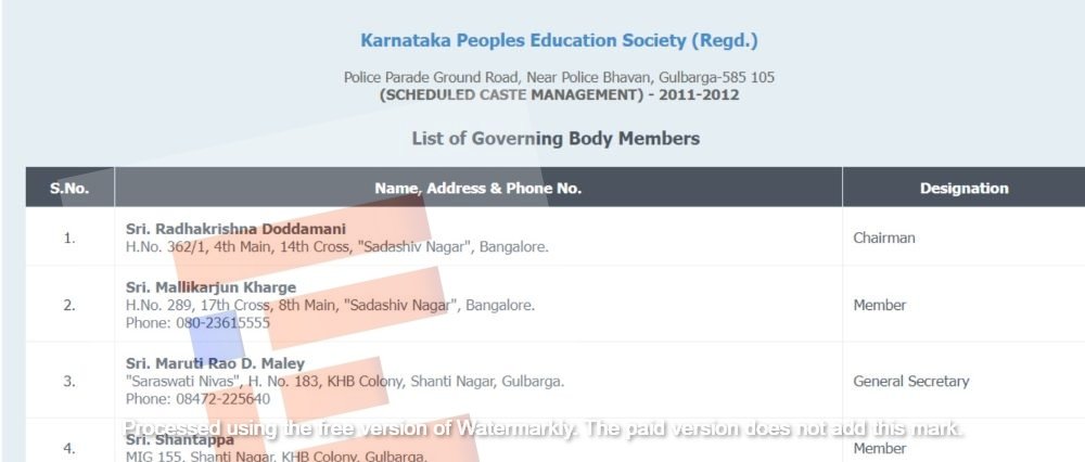 ಮಲ್ಲಿಕಾರ್ಜುನ ಖರ್ಗೆ ಕರ್ನಾಟಕ ಪೀಪಿಲ್ಸ್ ಎಜುಕೇಶನ್ ಸೊಸೈಟಿಯ ಸ್ಥಾಪಕ ಅಧ್ಯಕ್ಷರಾಗಿದ್ದರು. ಸದ್ಯ ಅವರು ಸೊಸೈಟಿಯಲ್ಲಿ ಯಾವುದೇ ಹುದ್ದೆ ಹೊಂದಿಲ್ಲ. ಆದರೆ, ಇವರ ಮಗ ಪ್ರಿಯಾಂಕ್ ಖರ್ಗೆ ಅದರ ಸದಸ್ಯರಾಗಿದ್ದಾರೆ. ಷರತ್ತಿನ ಪ್ರಕಾರ ಈ ನಿವೇಶನದಲ್ಲಿ ಕಲ್ಯಾಣ ಮಂಪಟ ಹೊರತುಪಡಿಸಿ ಬೇರೆ ಯಾವುದೇ ಚಟುವಟಿಕೆಗಳನ್ನು ನಡೆಸುವಂತಿಲ್ಲ ಎಂದು ದೂರಿನಲ್ಲಿ ಉಲ್ಲೇಖಿಸಿದ್ದರು.